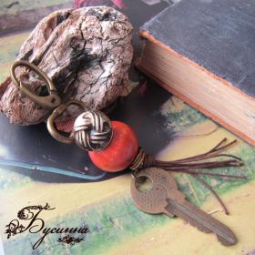 Брелок мужской 'Александр I' (2014) - бусина деревянная, пуговица, шнур вощеный, ключ (возраст 20 лет), фурнитура Размер брелка 13 см в длину