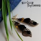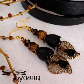 Серьги "Ажурные листочки" (2017) - фурнитура США, бусина Чехия, кристаллы Сваровски, фурнитура Южная Корея