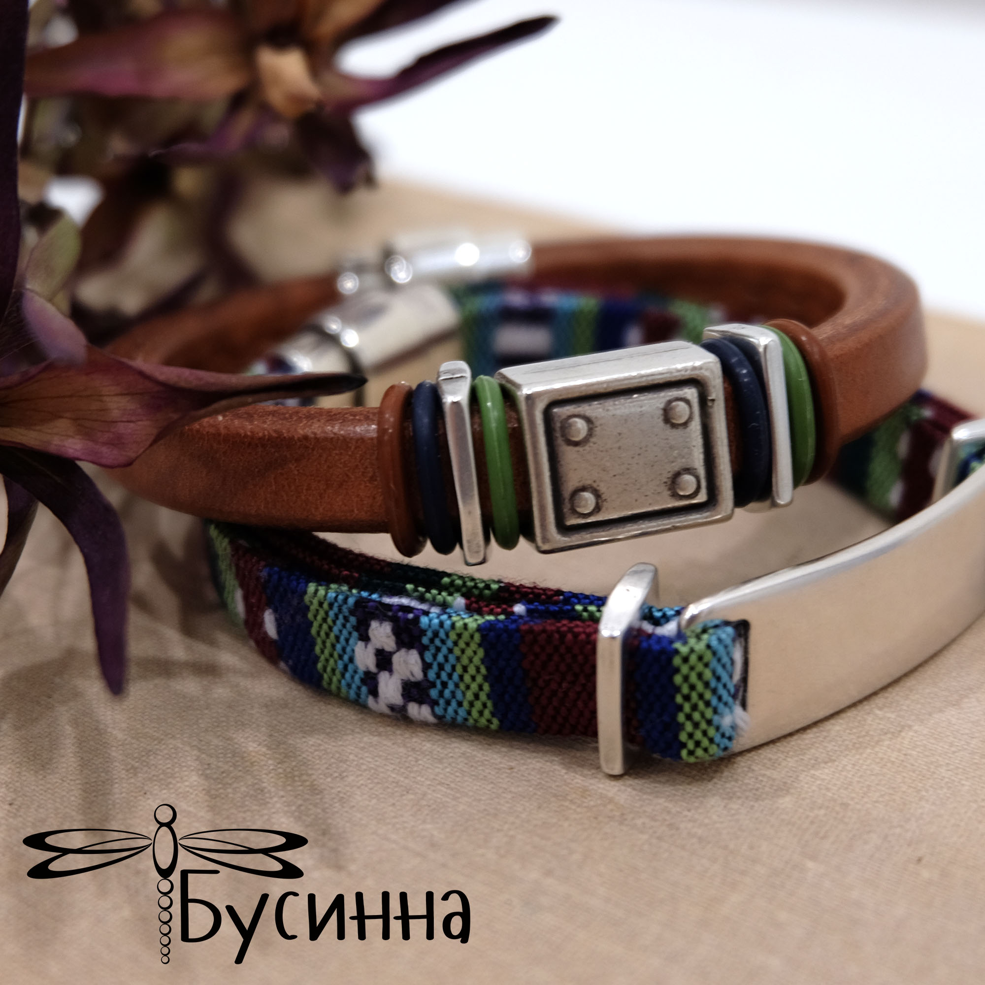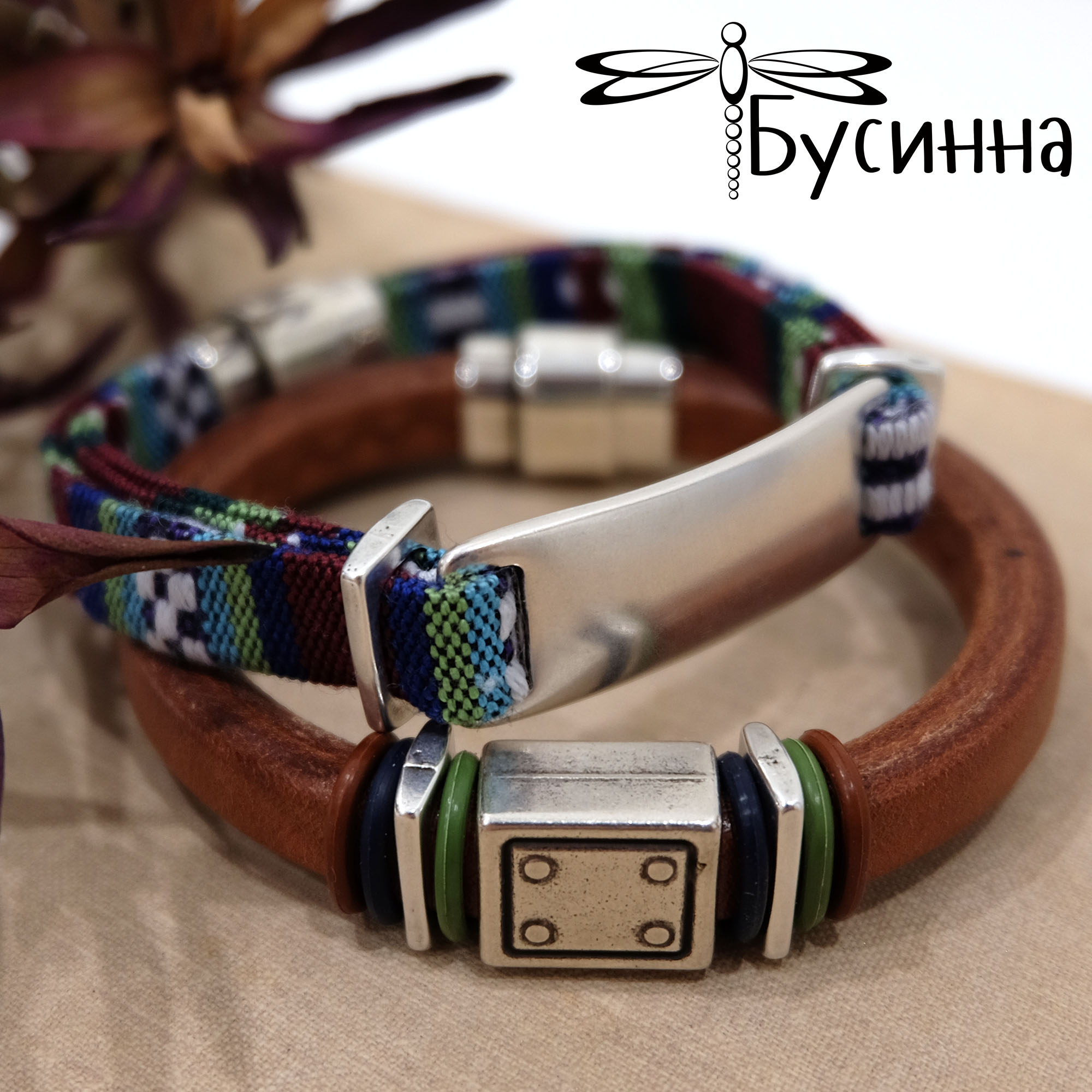 Комплект браслетов "Bracelet" (2016) - кожа натуральная (Испания), хлопок, колечки силиконовые, фурнитура Испания, металлические бусины Испания, металлическая бусина Греция