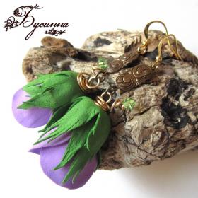 Серьги 'Бутончики роз' желтые, сиреневые (2014) - фоамиран, кристаллы Swarovski, фурнитура США, фурнитура Южная Корея - Размер серьги без швензы около 4,3 см., 5,5 см. Серьги очень легкие, хотя и объемные.