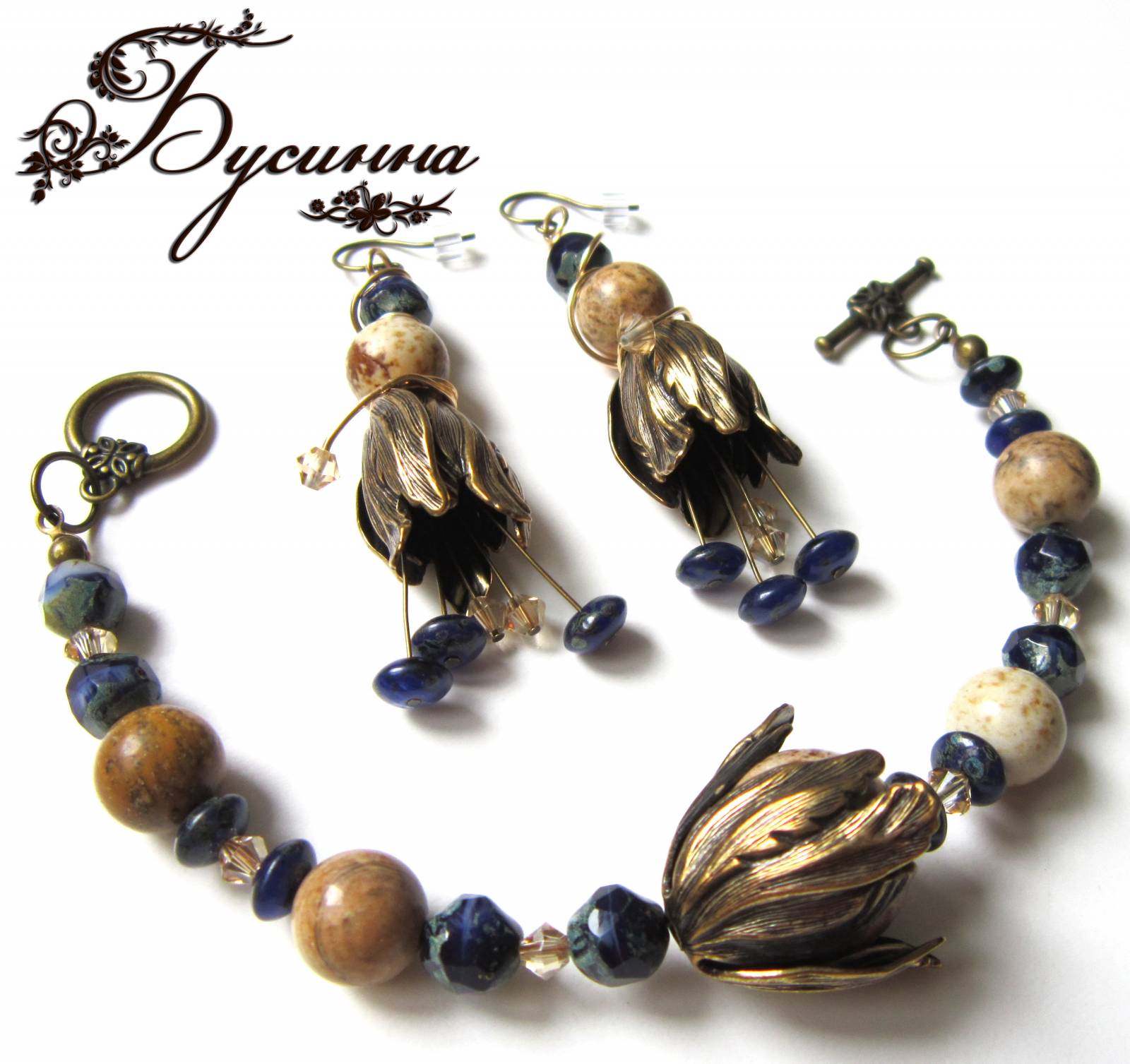 Полная фотография Вид украшения: КомплектГод: 2012В наличии: НетОписание: Браслет и серьги 'Campanula' (2012) - кристаллы Swarovski, яшма, бусина Чехия, фурнитура СШАМатериалы: кристаллы Swarovskiяшмабусина Чехияфурнитура США Войдите, чтобы оставлять комментарии
