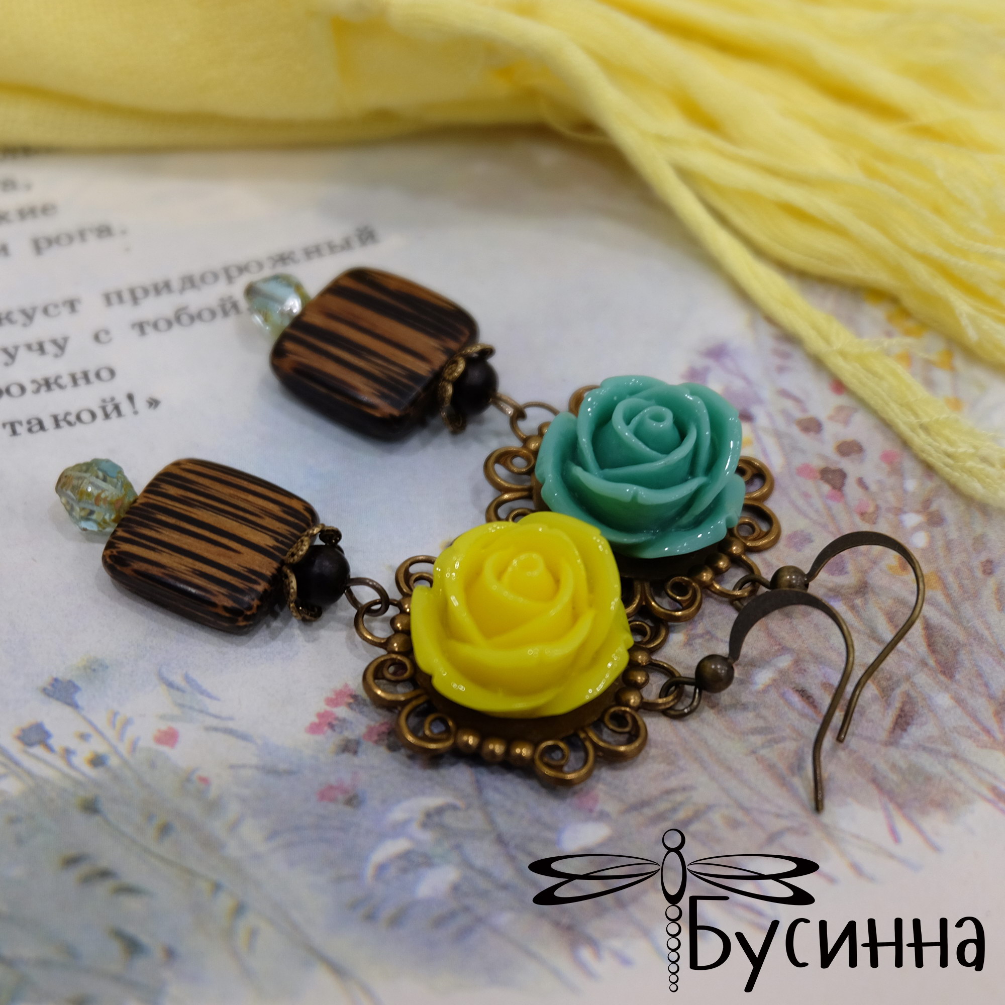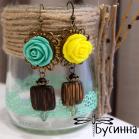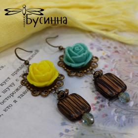 Серьги "Царственные" (2016) - розы акриловые, бусина из дерева patikan, бусина Чехия, бусина деревянная, фурнитура США, фурнитура Южная Корея