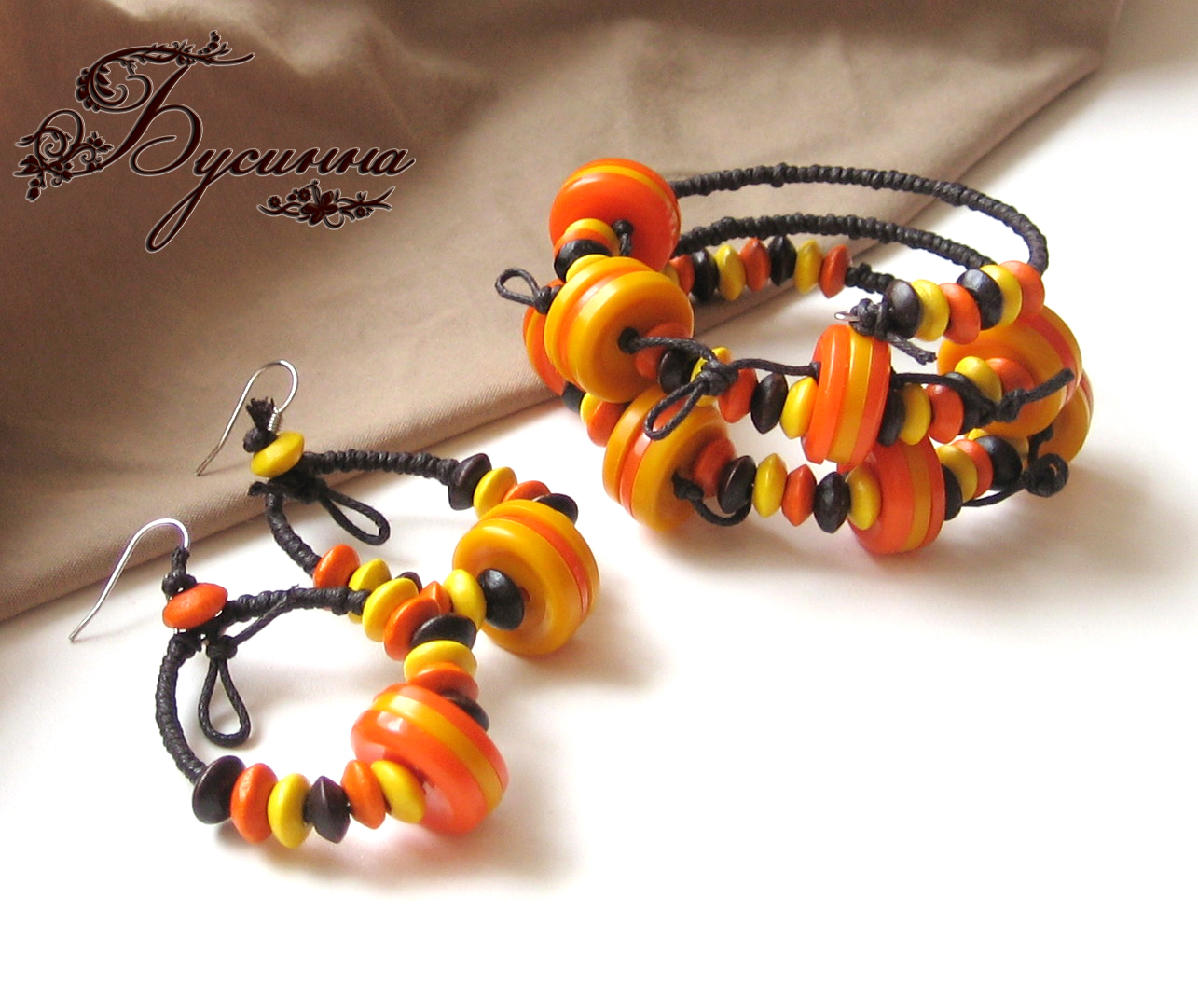 Полная фотография Вид украшения: КомплектГод: 2010В наличии: НетОписание: Браслет и серьги - Чунга-Чанга - пуговица, бусина деревянная, шнур вощеный, мемори-проволока, фурнитураМатериалы: пуговицабусина деревяннаяшнур вощеныймемори-проволокафурнитура Войдите, чтобы оставлять комментарии