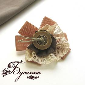 Брошь - Цветочная планета - лента декоративная, кружево (возраст 30 лет), пуговица декоративная, шнур вощеный, фурнитура (античная бронза)