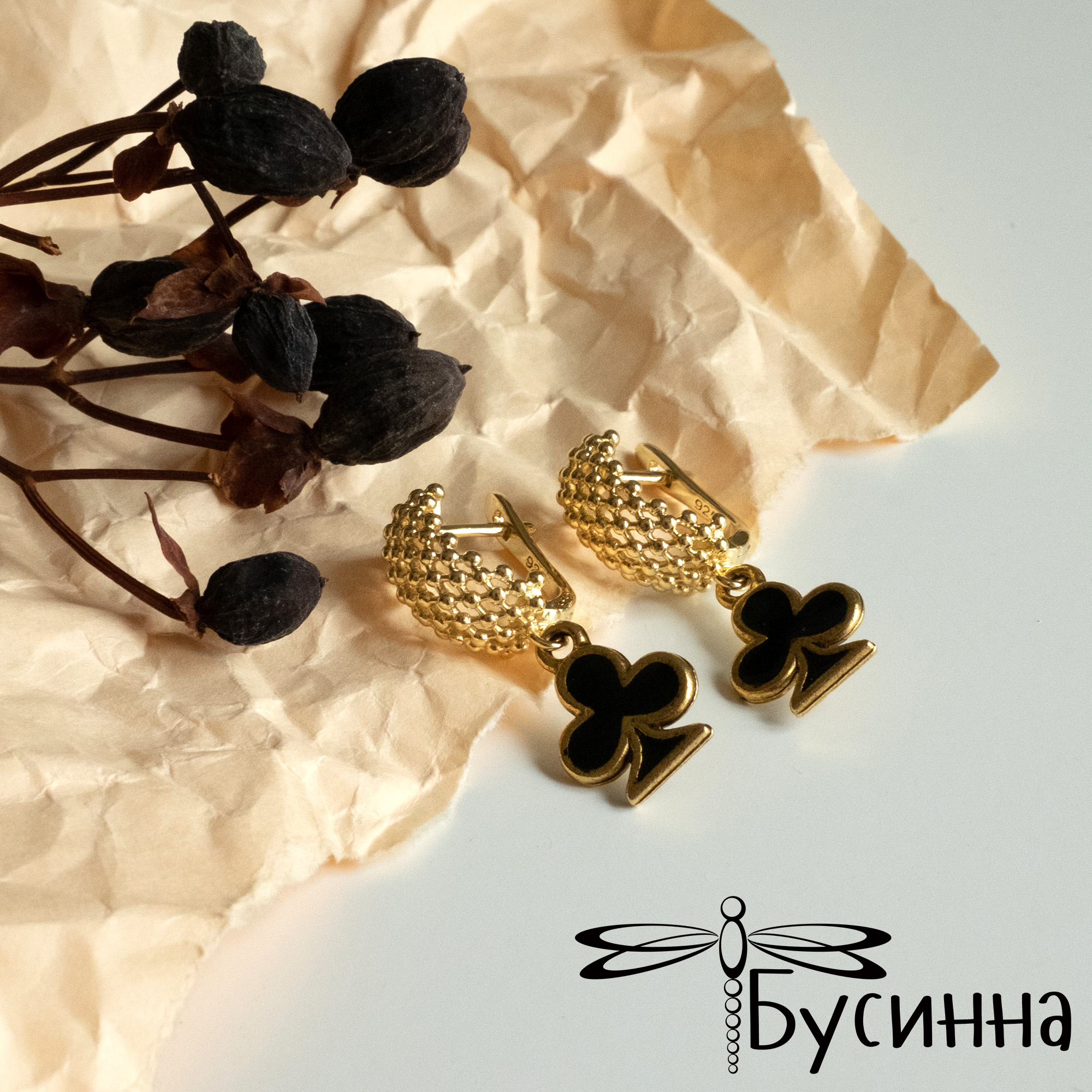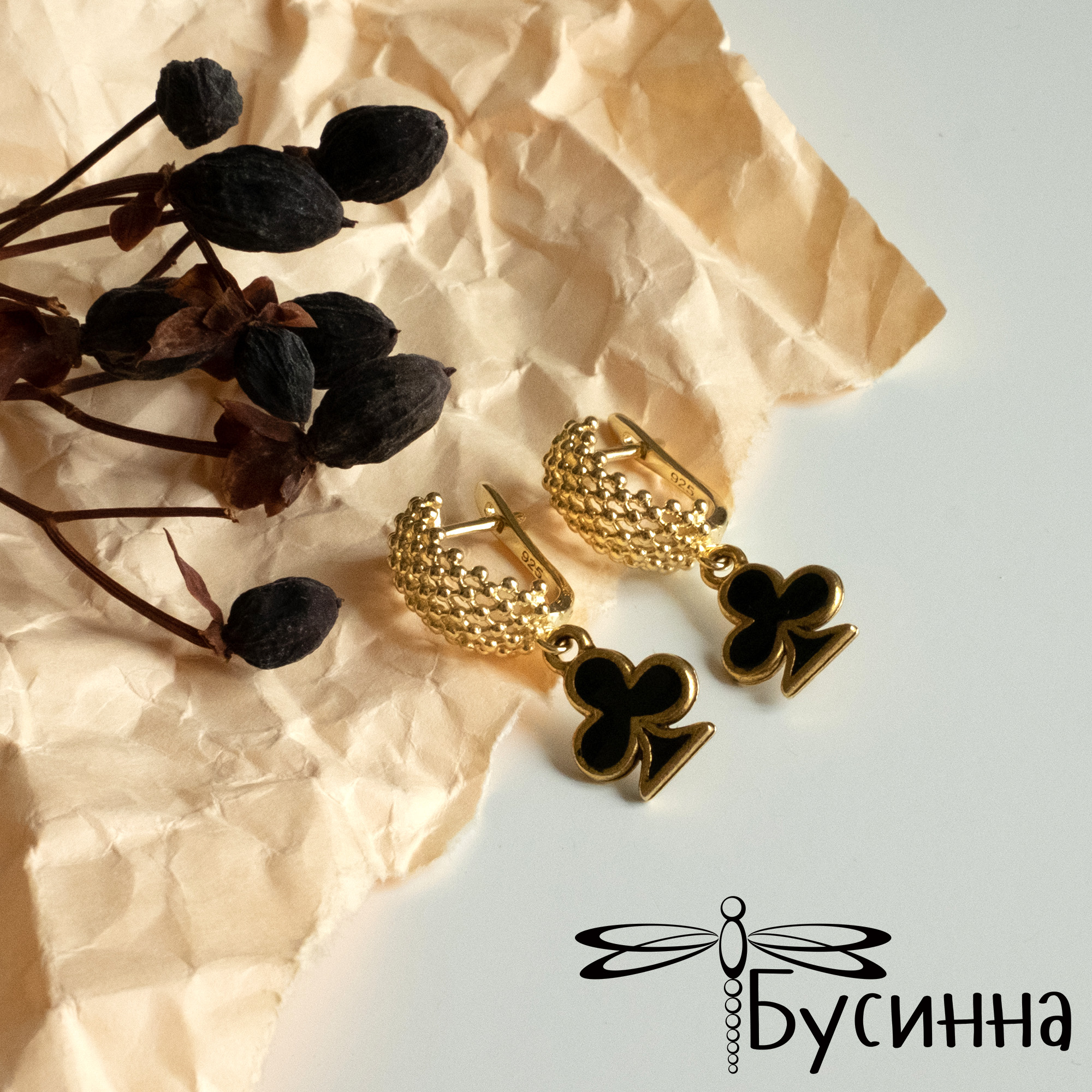 Серьги "Дама Трефы" (2021) - фурнитура Южная Корея из латуни с покрытием золото 22К, фурнитура США. Цвет украшения на экране может отличаться от реального.