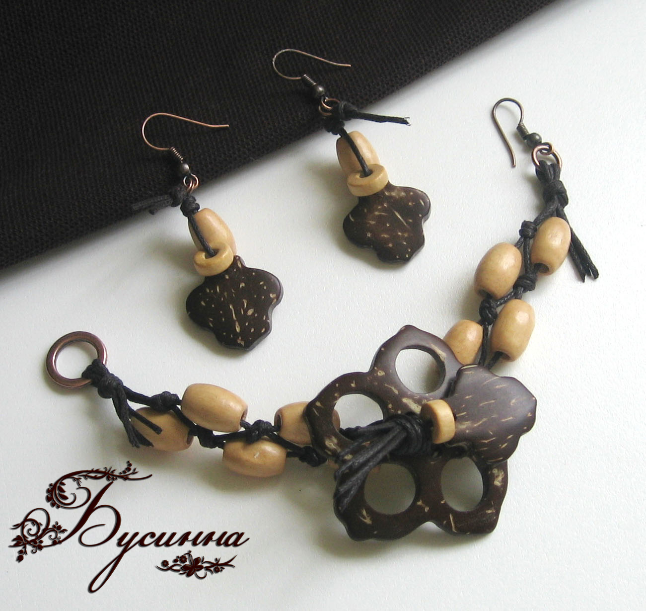 Полная фотография Вид украшения: КомплектГод: 2010В наличии: НетОписание: Браслет и серьги - Дикий запад - кокос, бусина деревянная, вощеный шнур, фурнитураМатериалы: кокосбусина деревяннаявощеный шнурфурнитура Войдите, чтобы оставлять комментарии