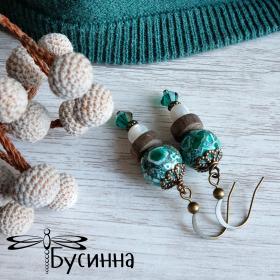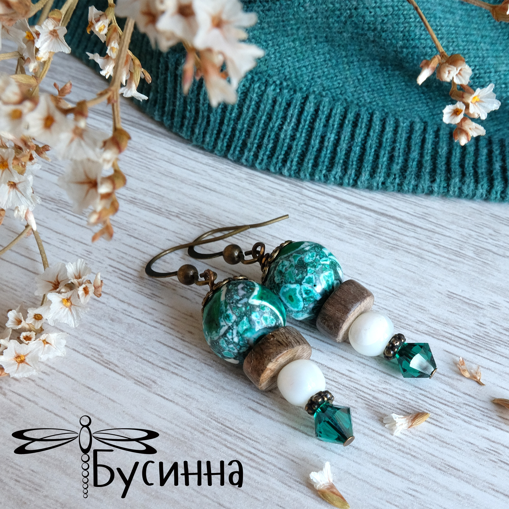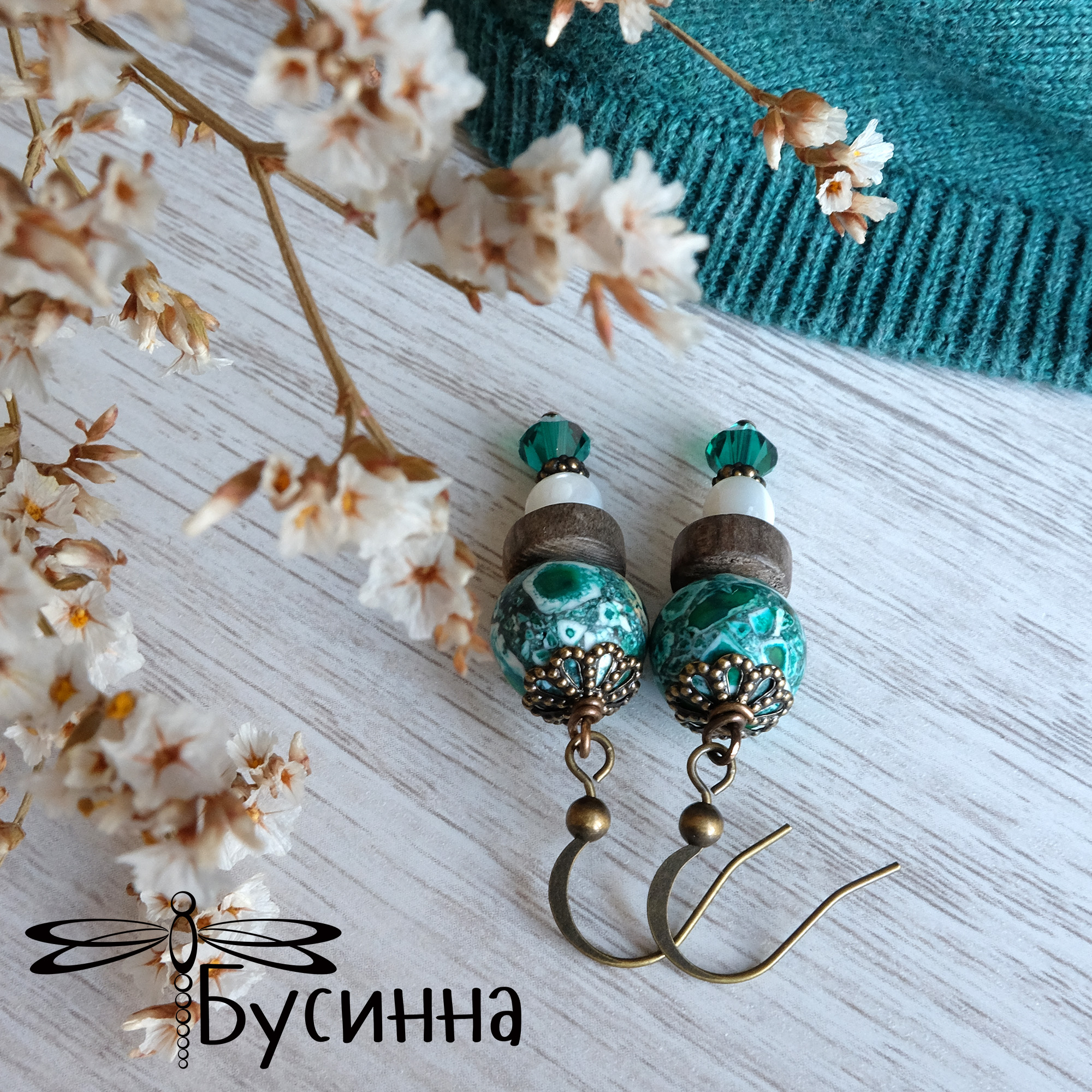 Серьги "Изумруд - вечная классика" (2018) - фурнитура США, фурнитура Южная Корея, кристаллы Сваровски, бусина каменная, бусина деревянная, жемчуг речной