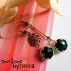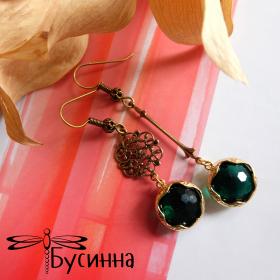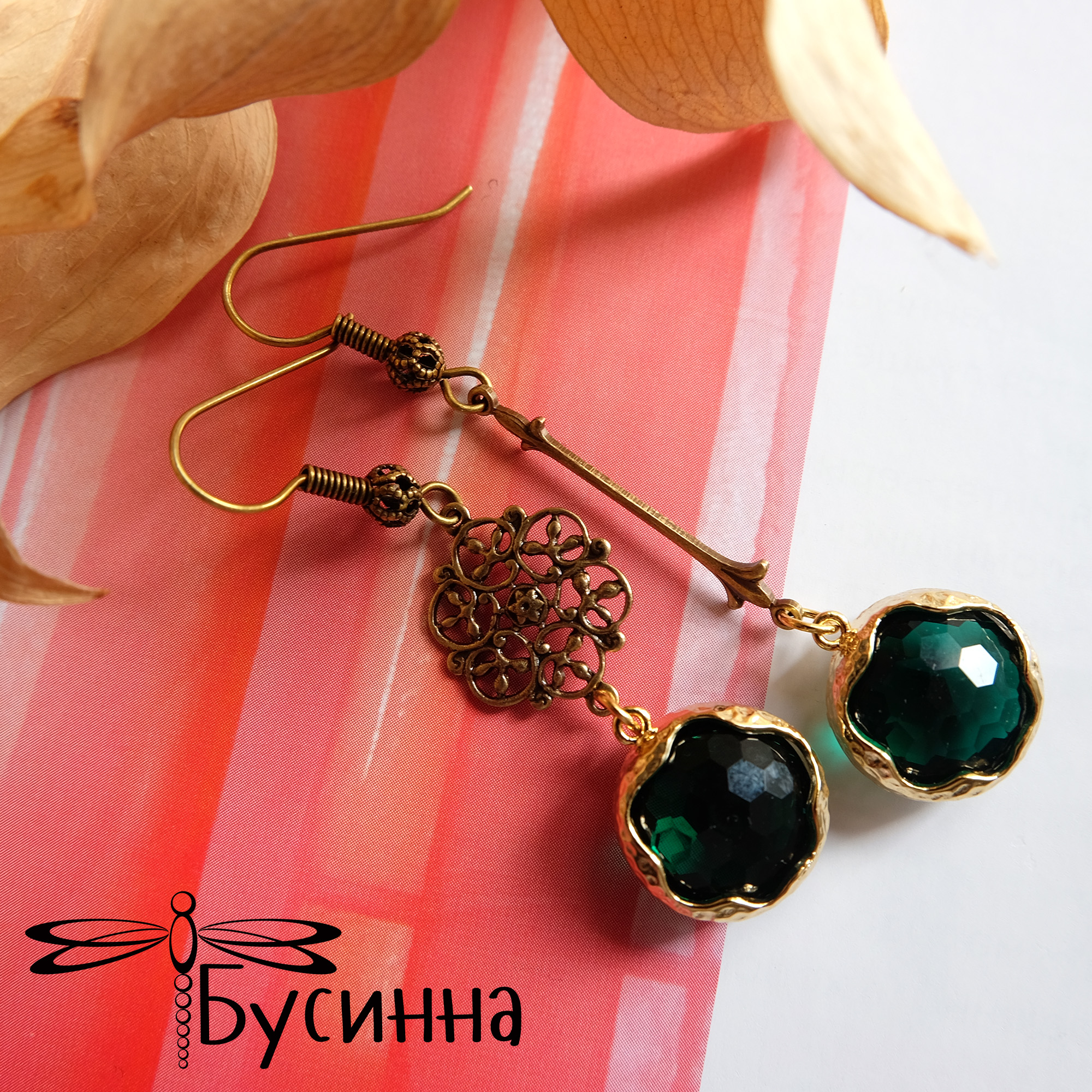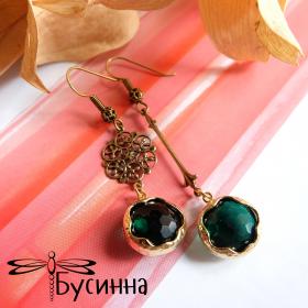 Серьги "Изумрудный остров" асимметричные (2020) - фурнитура Южная Корея, подвеска ювелирное стекло, фурнитура США