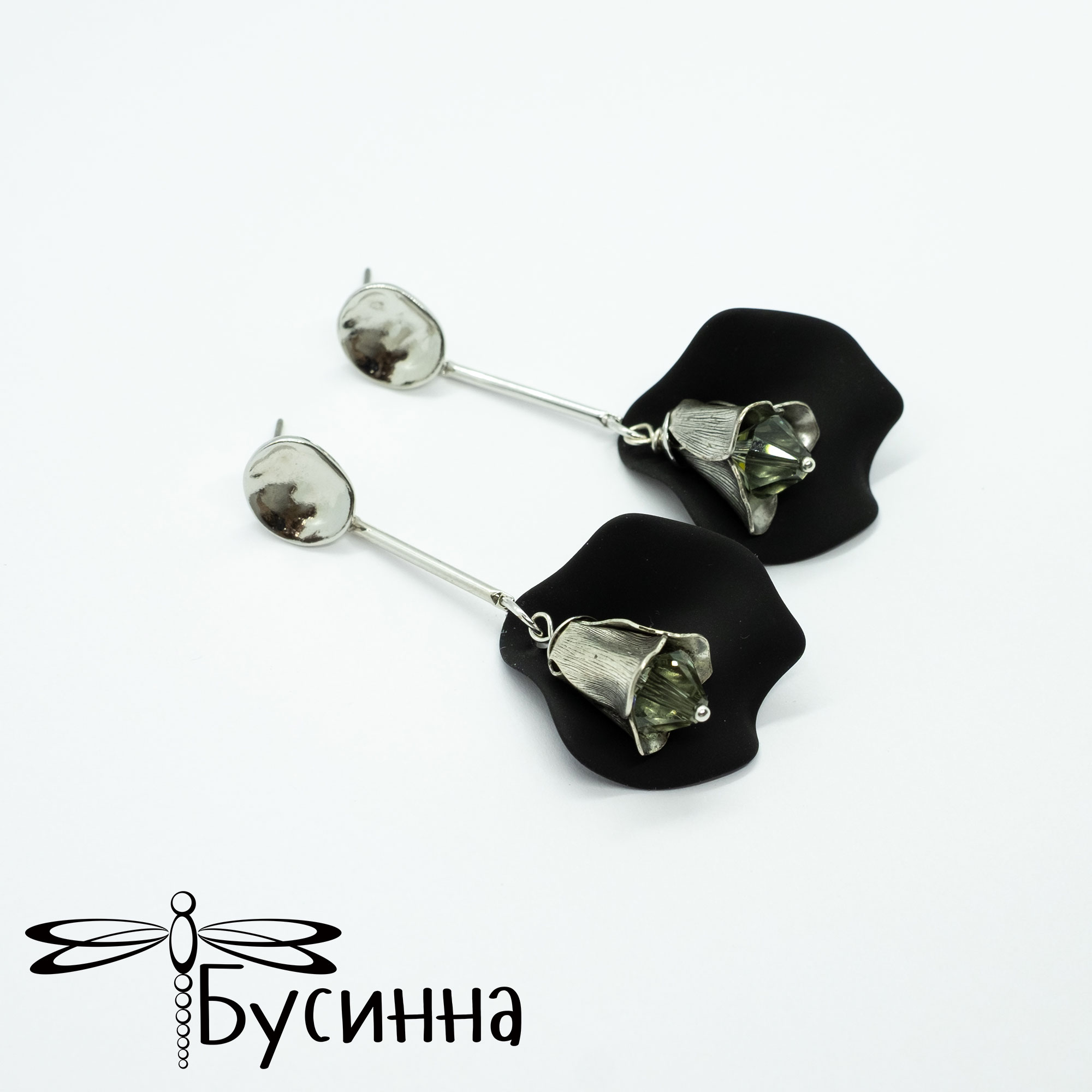 Серьги-пуссеты "Колокольчик" черный (2022) - фурнитура Южная Корея из латуни с родированием, пин - титан, пластик Южная Корея, фурнитура США, кристаллы Сваровски. Цвет украшения на экране может отличаться от реального.