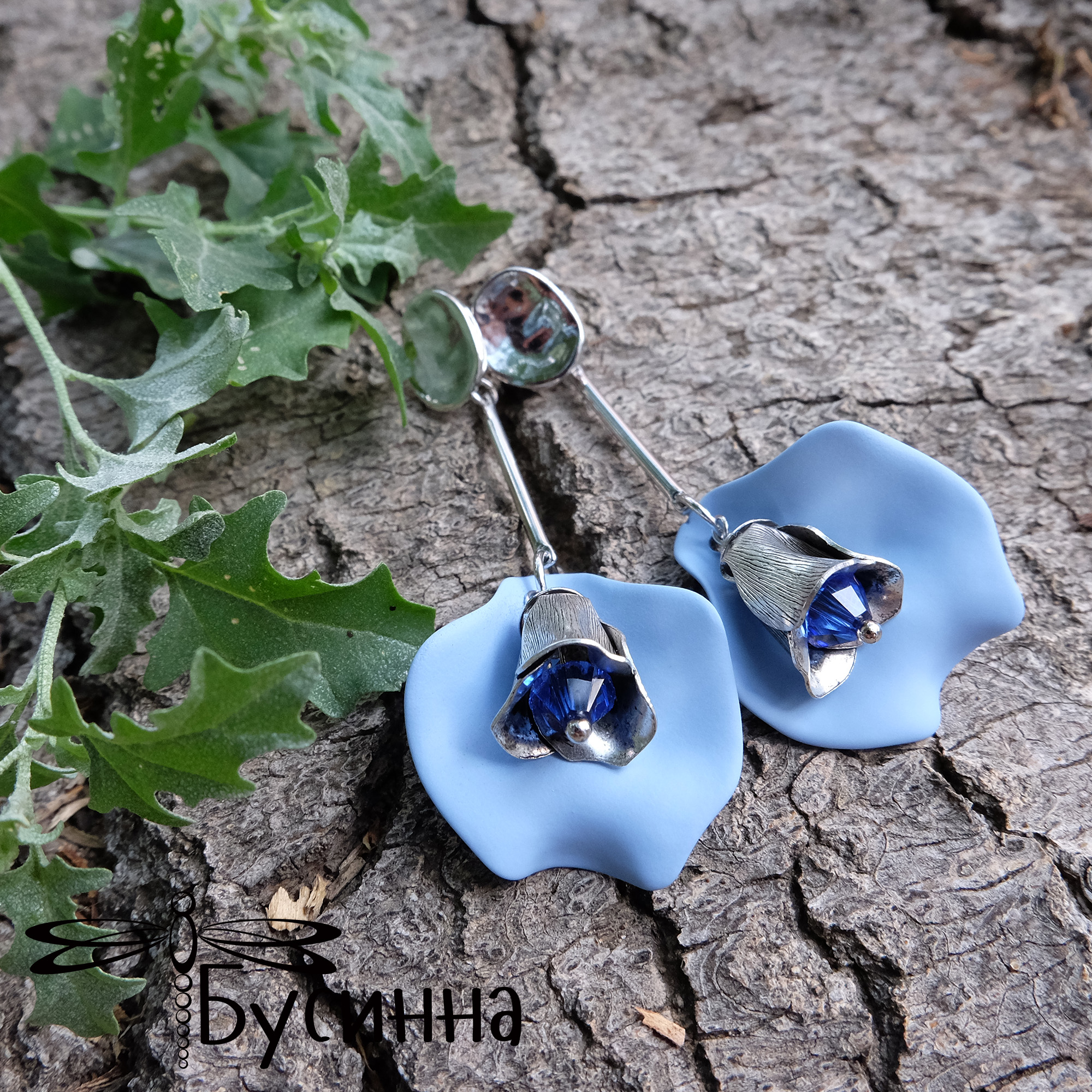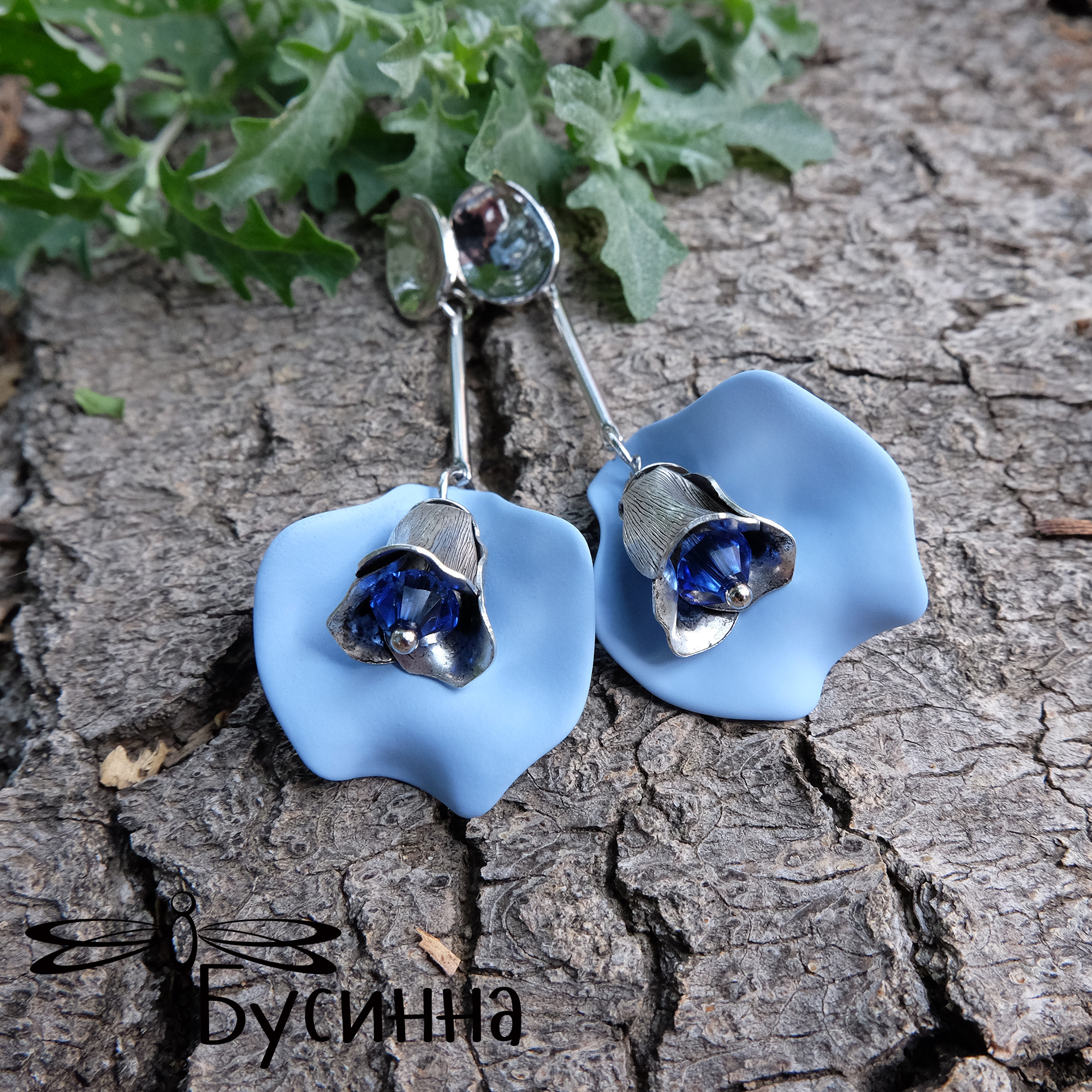 Серьги-пуссеты "Колокольчик" голубой (2020) - фурнитура Южная Корея из латуни с родированием, пин - титан, пластик Южная Корея, фурнитура США, кристаллы Сваровски. Цвет украшения на экране может отличаться от реального.