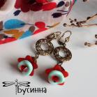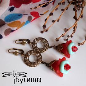Серьги "Колокольчики (красные)" (2017) - фурнитура США, бусина Чехия, кристаллы Сваровски, бусина акриловая