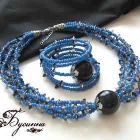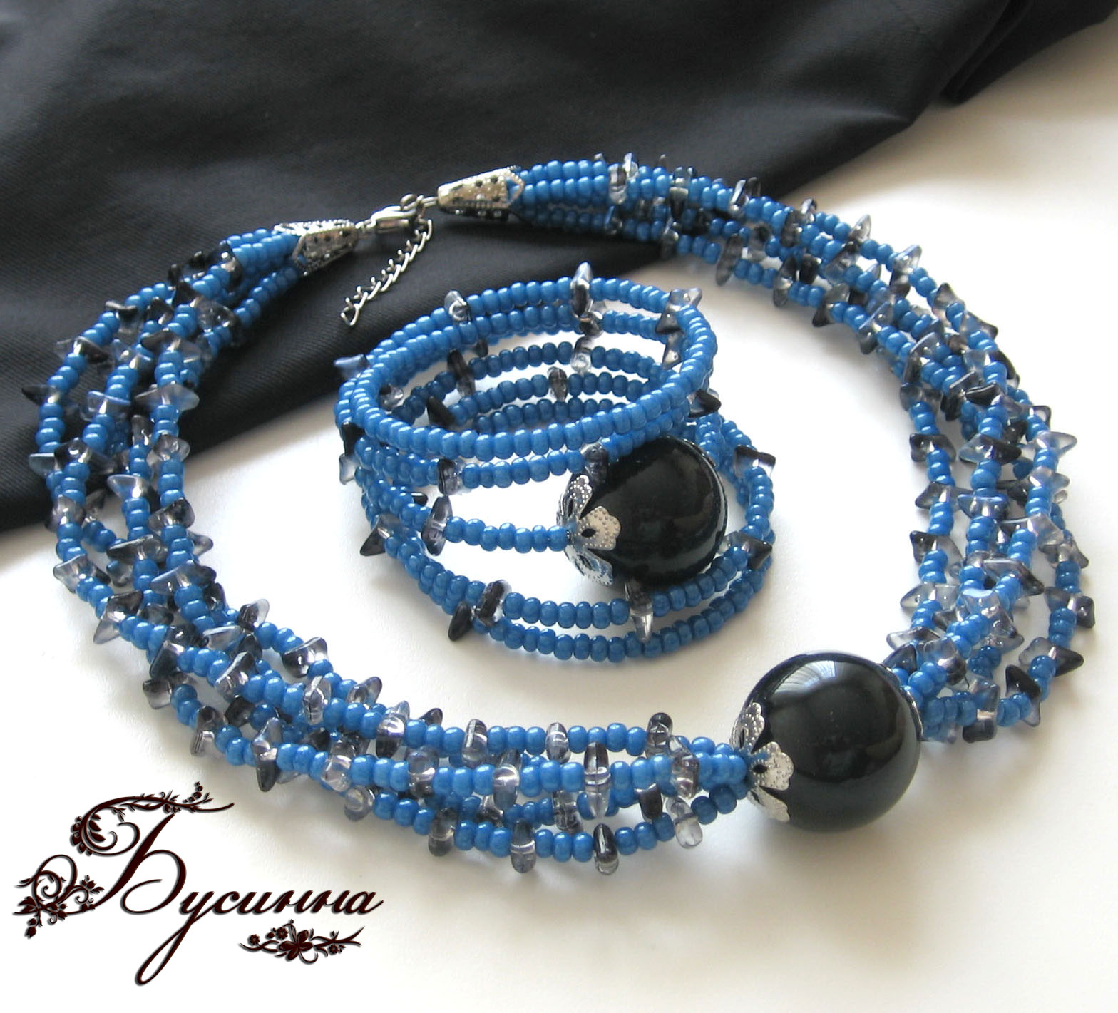 Браслет и бусы - Ледяные шипы - бусина акриловая, бисер Чехия, фурнитура