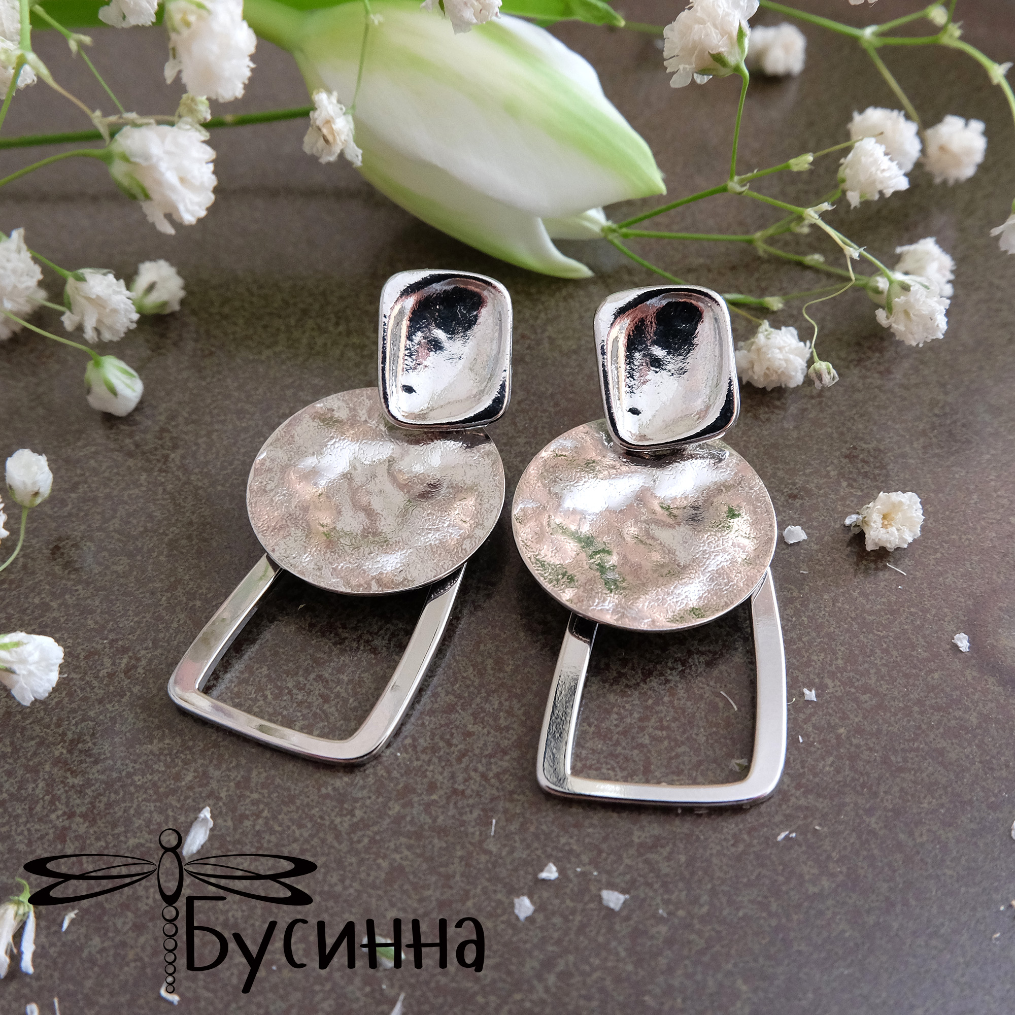 Серьги-пуссеты "Любовь к геометрии" (2020) - фурнитура Южная Корея  из латуни с родированием, пин - титан