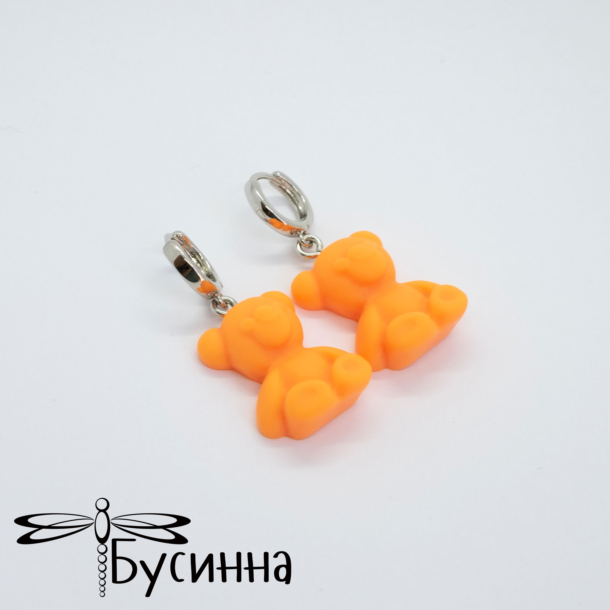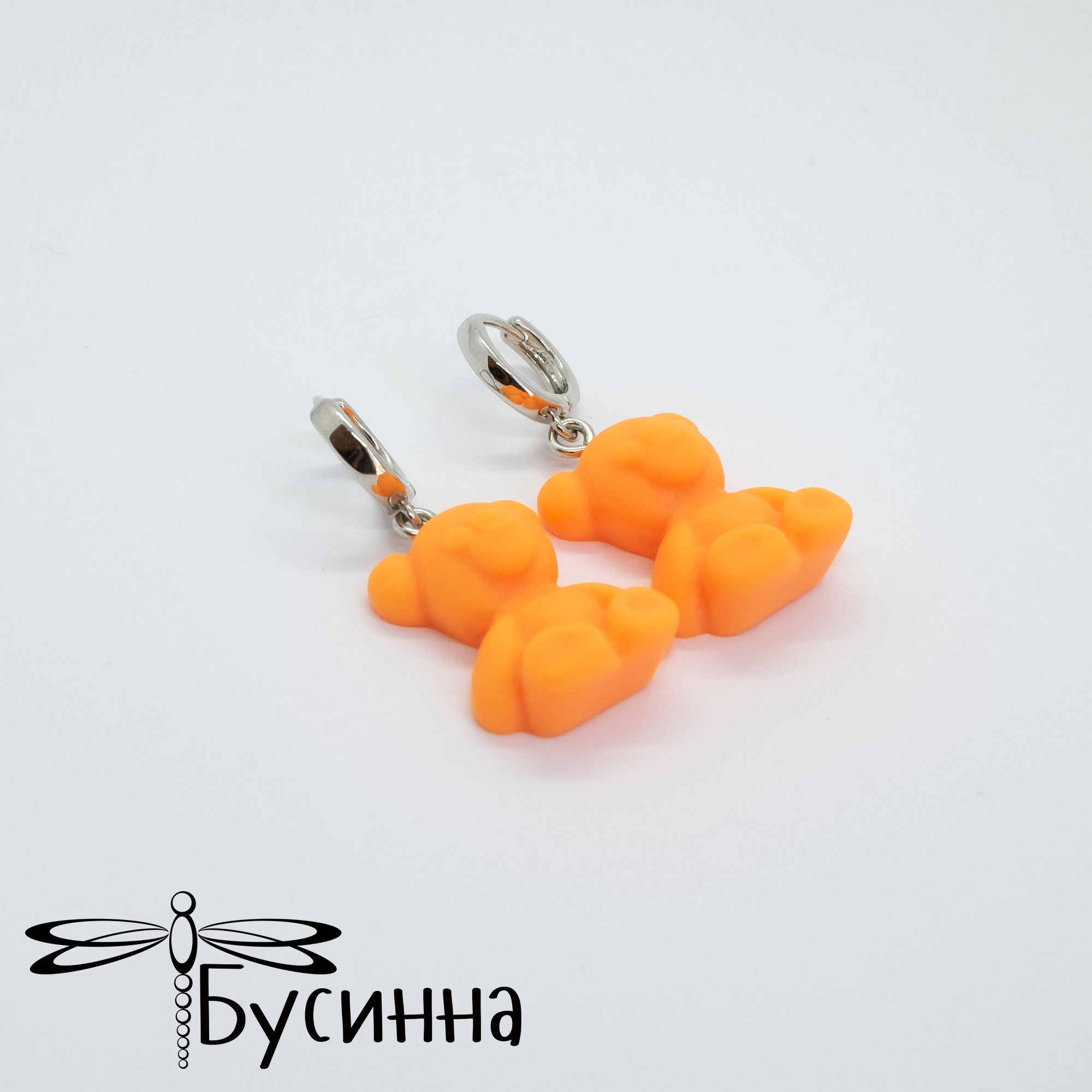 Серьги "Мишки" оранжевые (2022) - фурнитура Южная Корея из латуни с родированием, подвеска из эпоксидной смолы. Цвет украшения на экране может отличаться от реального.