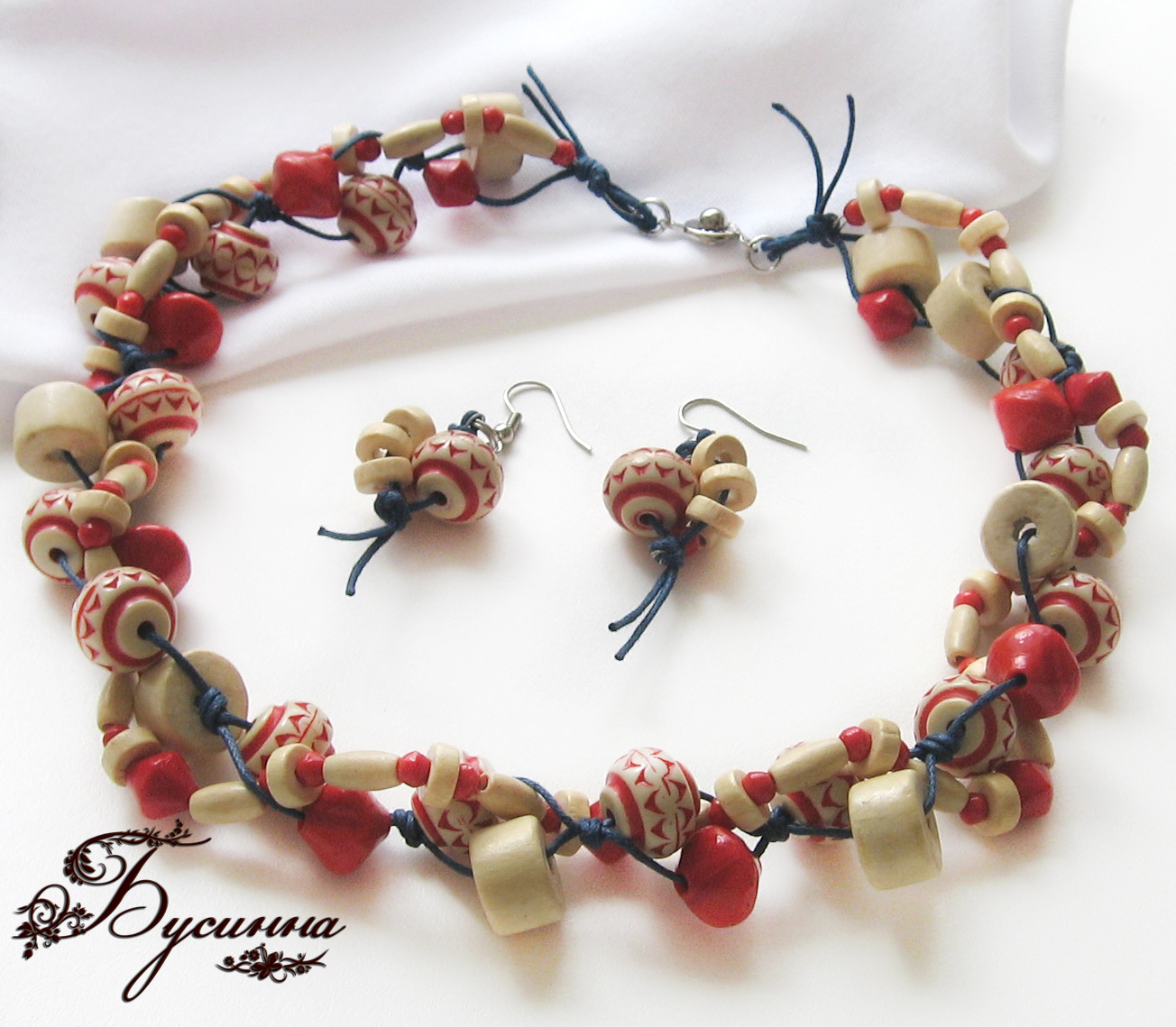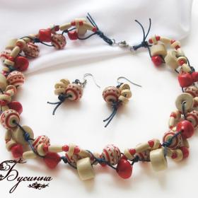 Бусы и серьги - Морошка - бусина - пластик, деревянная, стеклянная, шнур вощеный, тросик ювелирный, фурнитура
