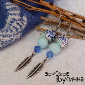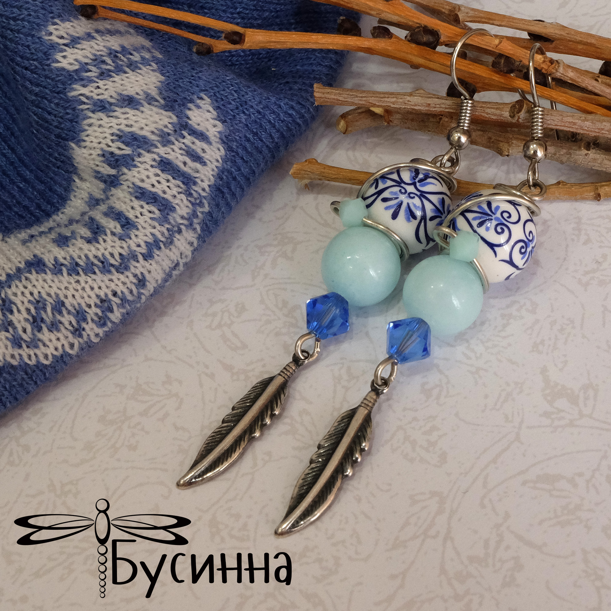 Серьги "Морозный день" (2016) - кристаллы Сваровски, жадеит, бусина керамическая, фурнитура США, фурниутра Чехия