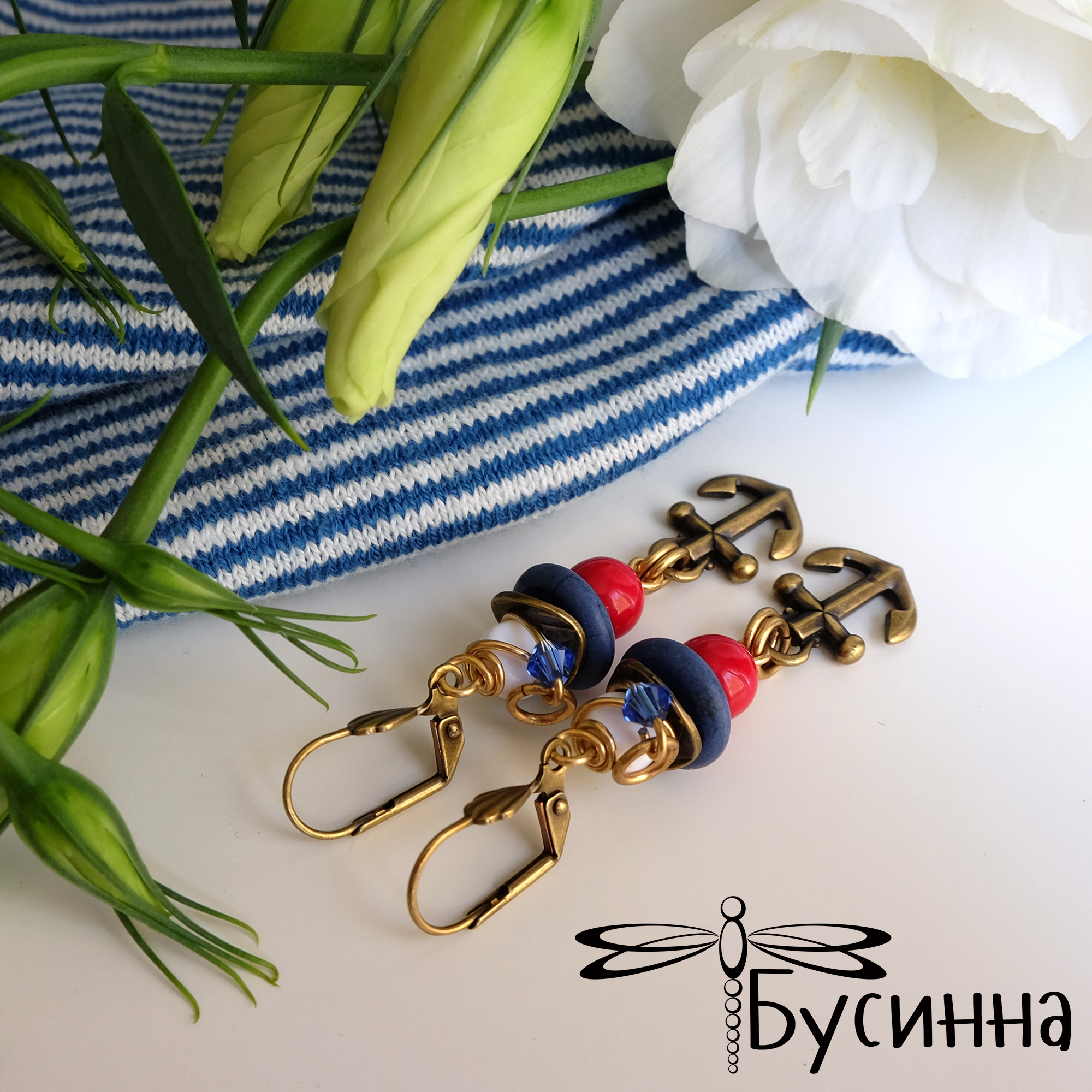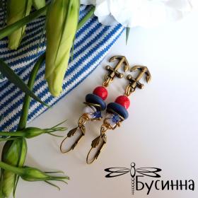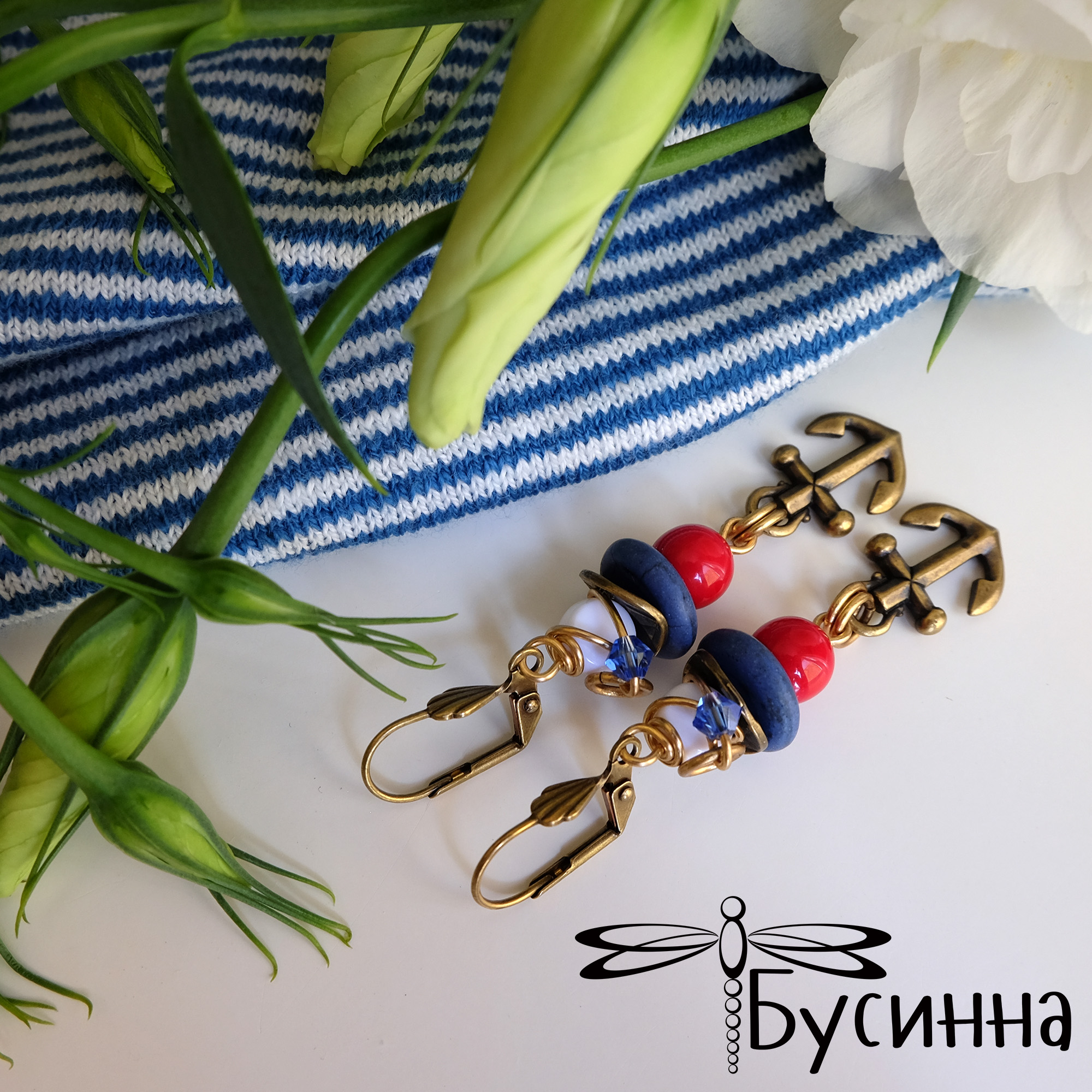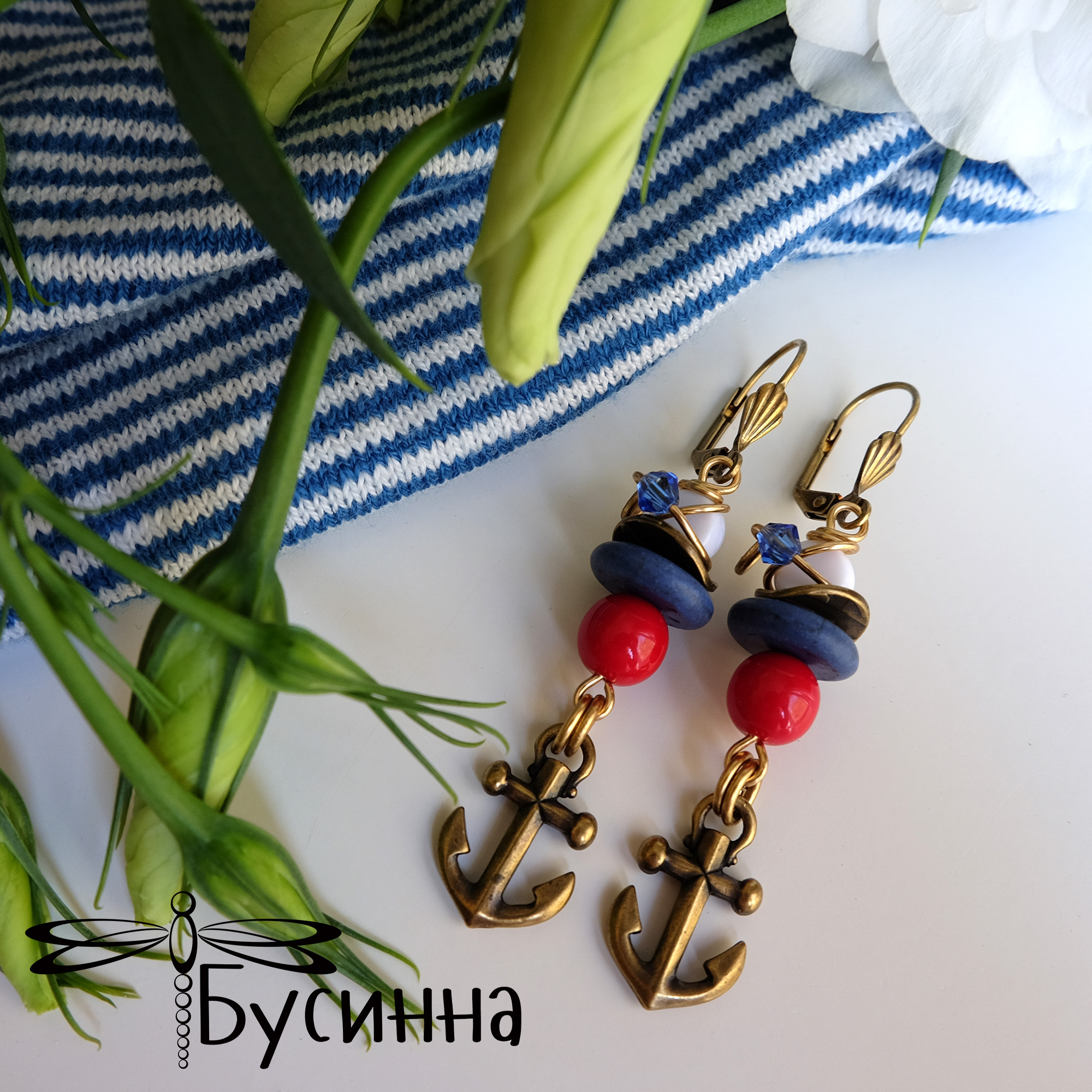 Серьги "Морская гавань" (2018) - бусина Чехия, говлит (прессованый камень), кристаллы Сваровски, фурнитура США