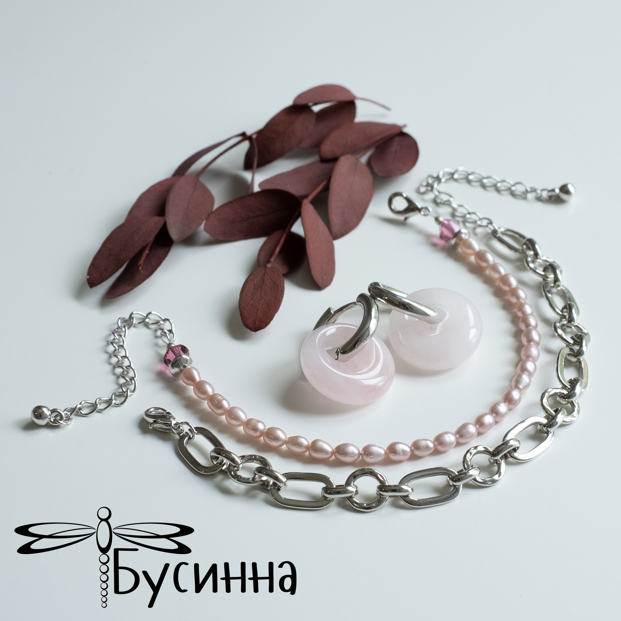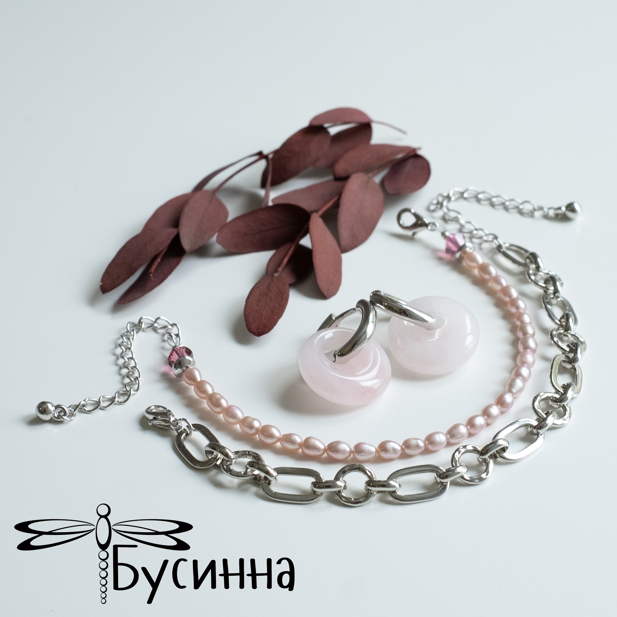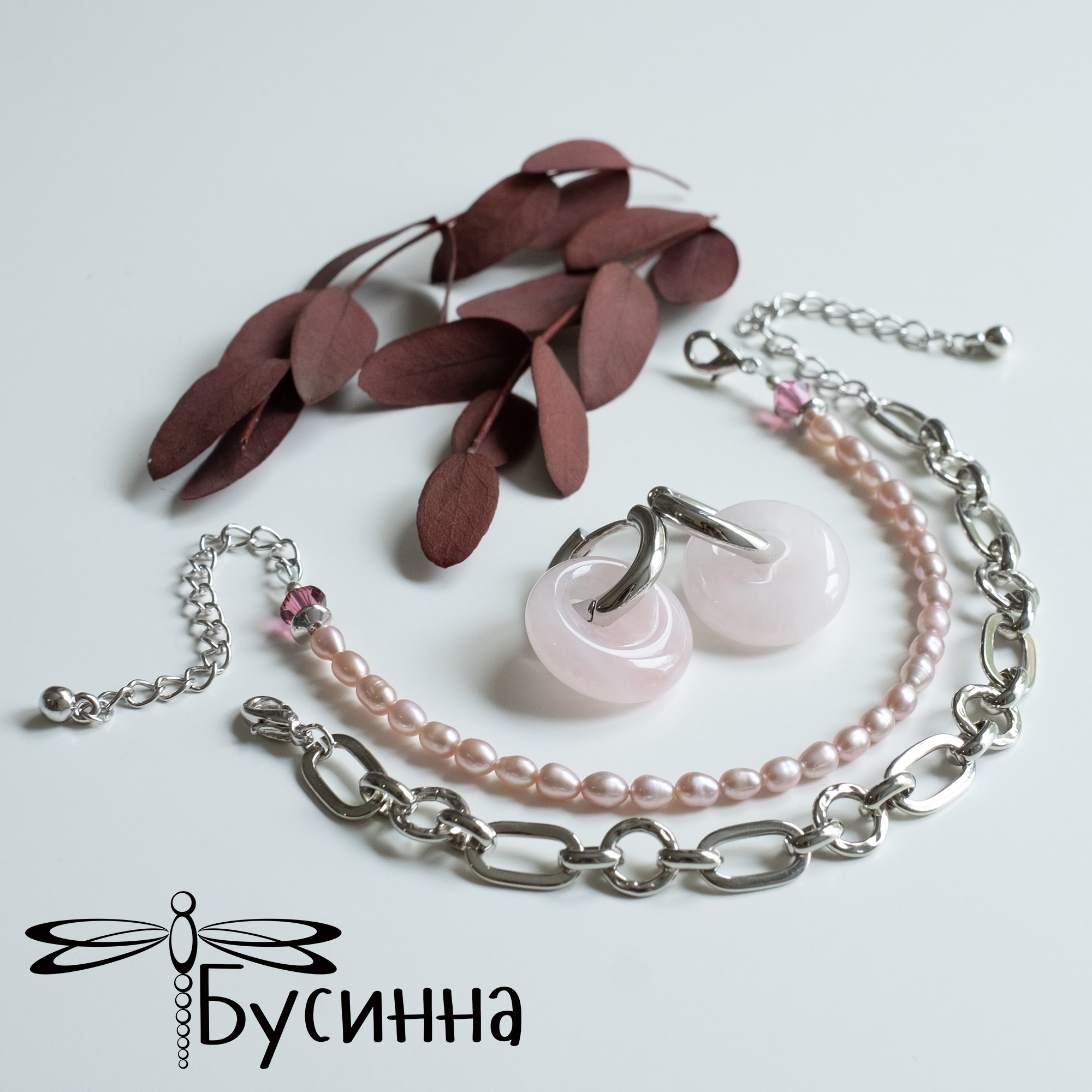 Браслет (2 шт.) и серьги "Нежность к себе" (2021) - бусина из халцедона, речной жемчуг, кристалл Сваровски, фурнитура Южная Корея. Цвет украшения на экране может отличаться от реального.