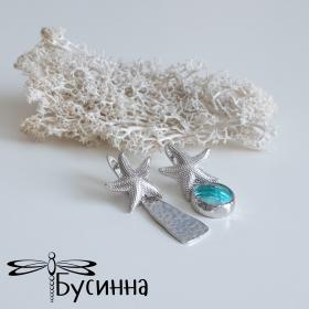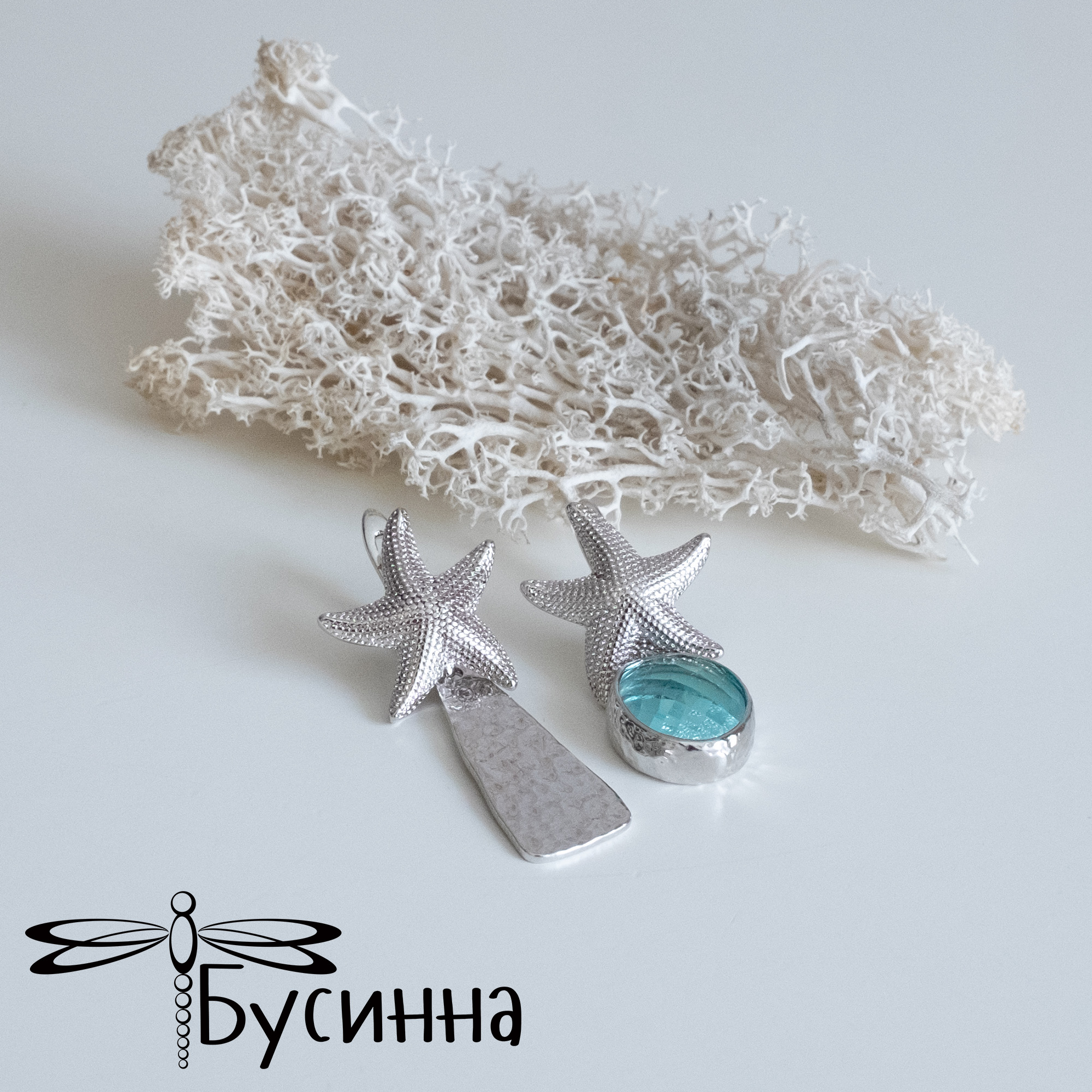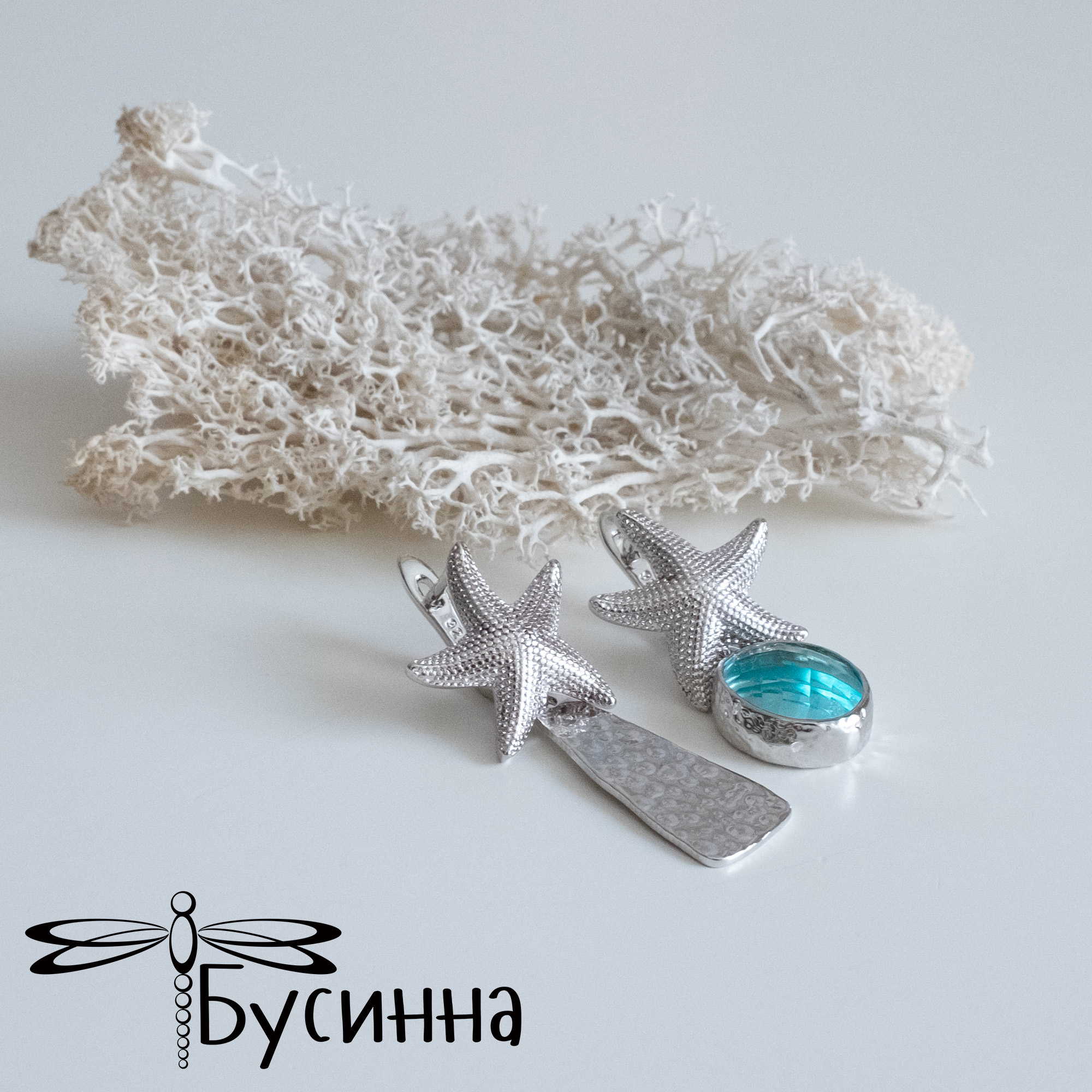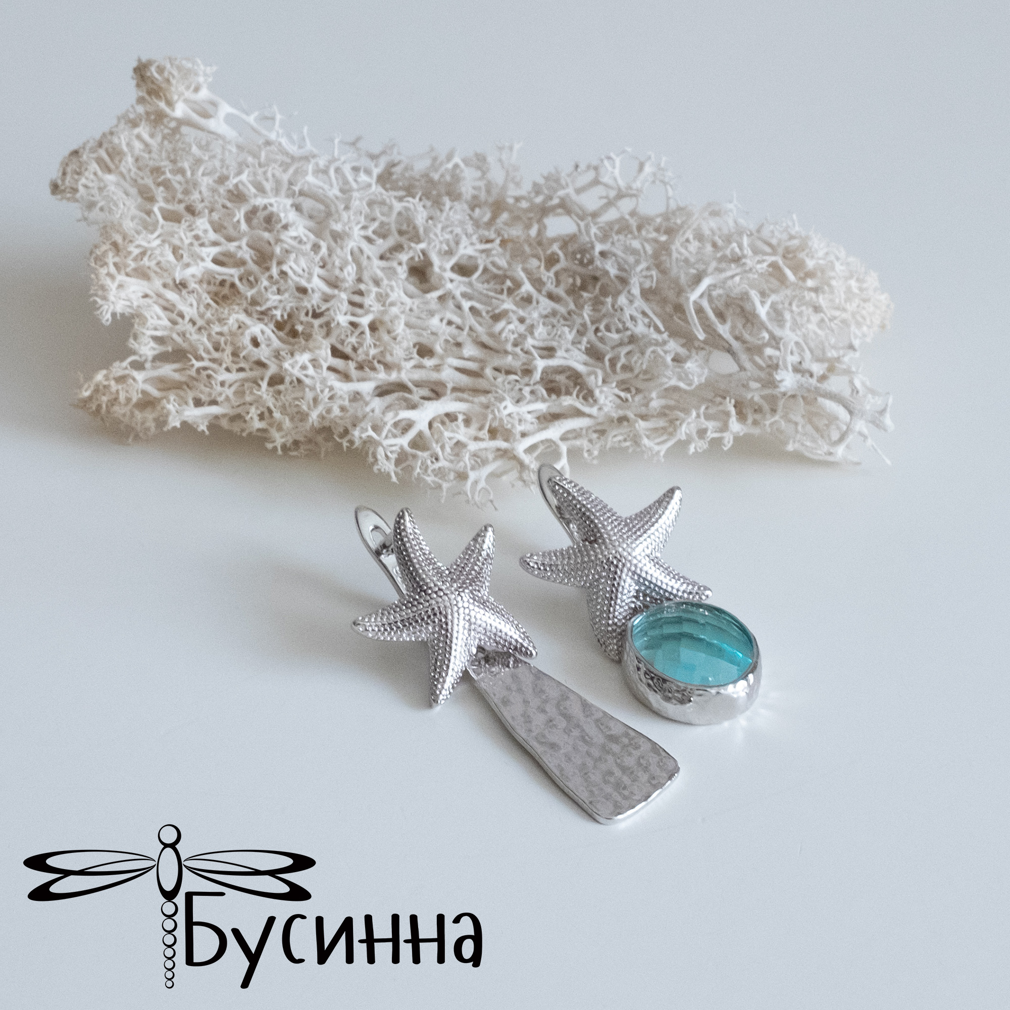 Серьги асимметричные с английским замком "Остров Крит" (2021) - фурнитура Южная Корея  из латуни с родированием, подвеска ювелирное стекло. Цвет украшения на экране может отличаться от реального.