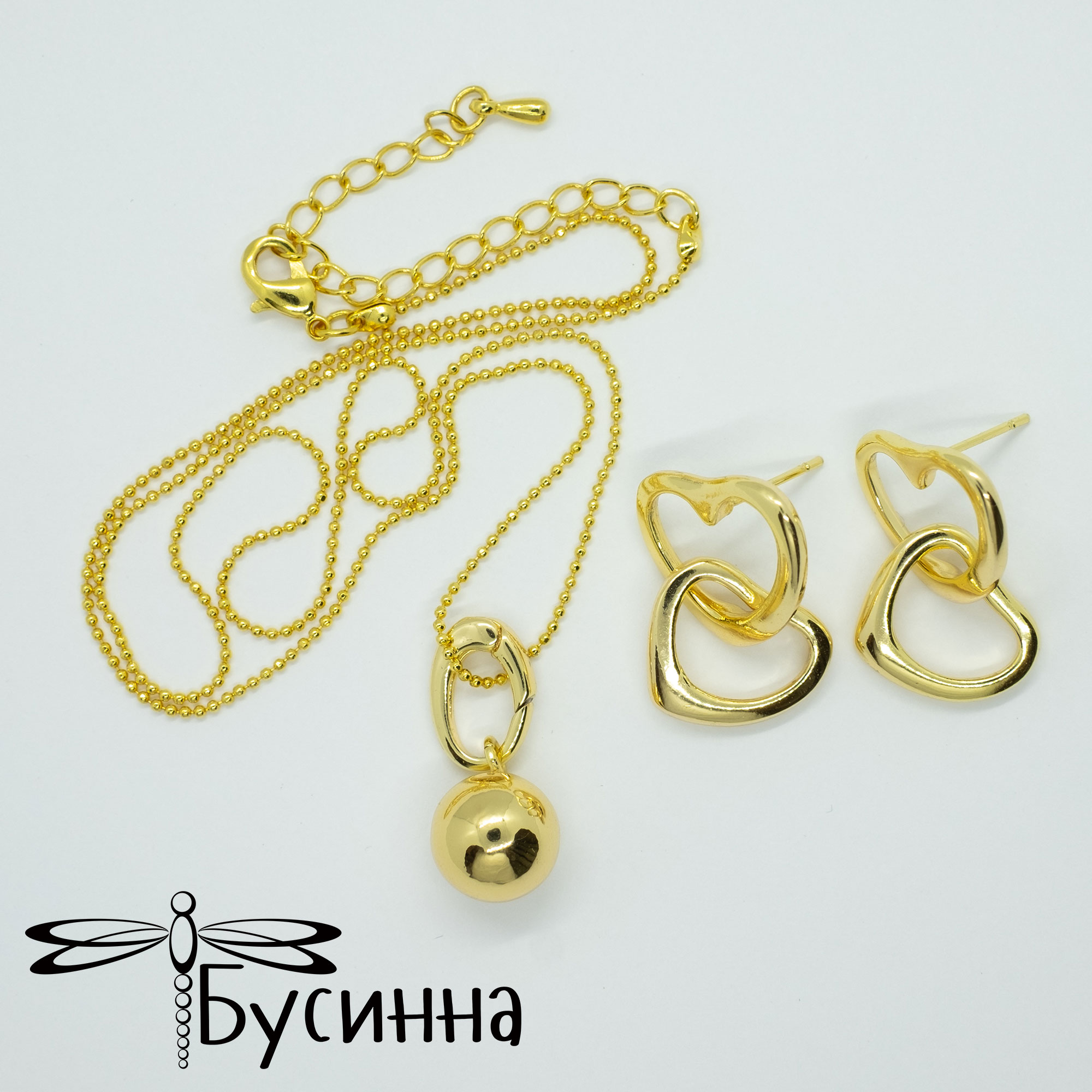 Цепочка и серьги "Пара сердец" (2022) - фурнитура Южная Корея. Цвет украшения на экране может отличаться от реального.