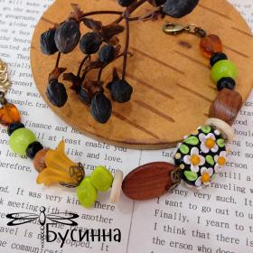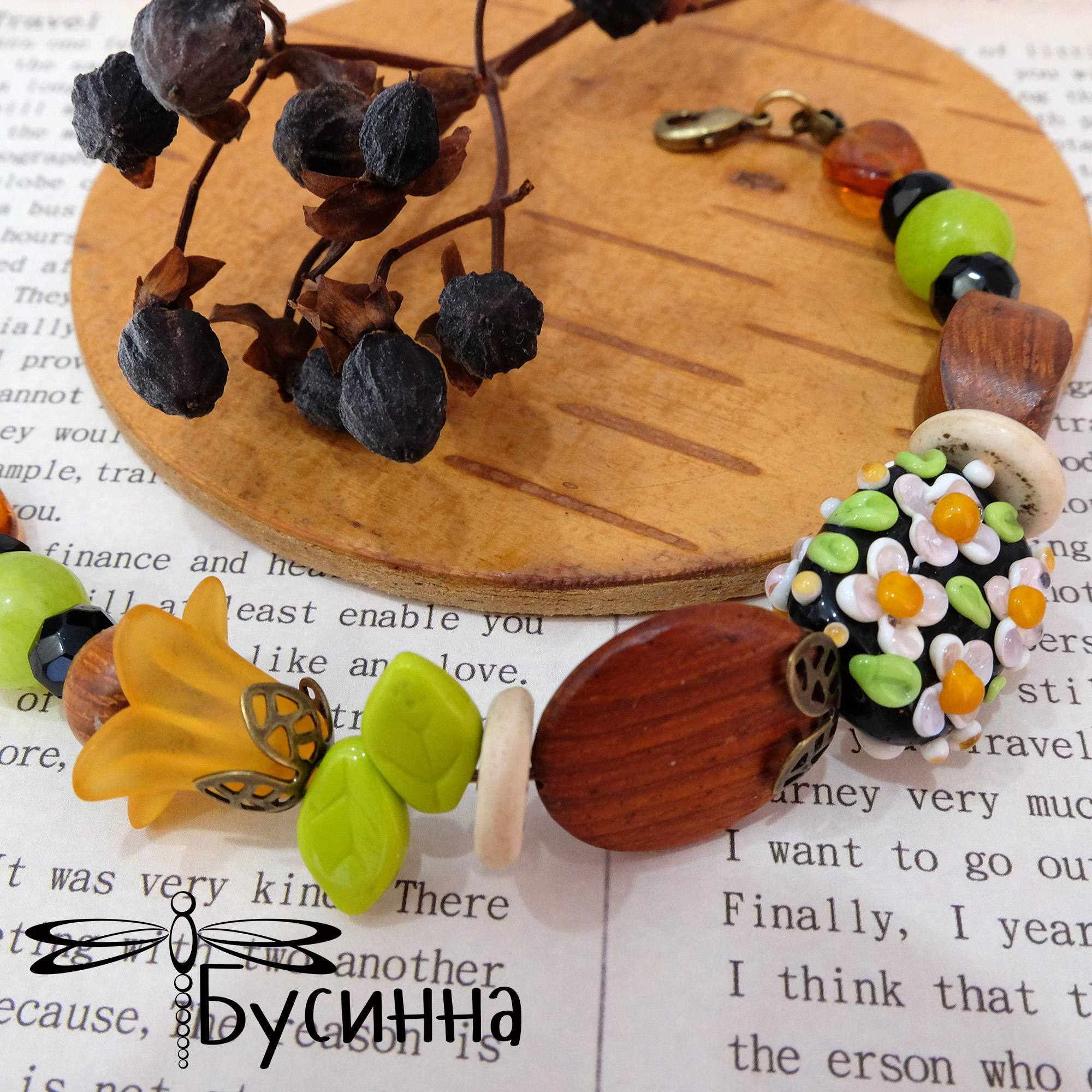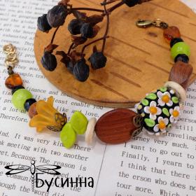 Браслет "Полевые цветы" (2018) - бусина Чехия, жадеит, бусина деревянная, говлит, бусина ручной работы В. Балашовой, бусина акриловая, фурнитура США. Цвет украшения на экране может отличаться от реального.