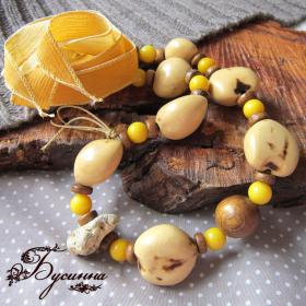 Украшение " Прогулка в солнечный денек" предназначается любителям всего натурального... натуральный камень, натуральное дерево, натуральный шелк, природные материалы - кукуи.