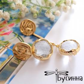 Серьги-пуссеты "Прозрачная капель" асимметричные (2020) - фурнитура Южная Корея из латуни с покрытием золото 22К, пин - титан, подвеска ювелирное стекло