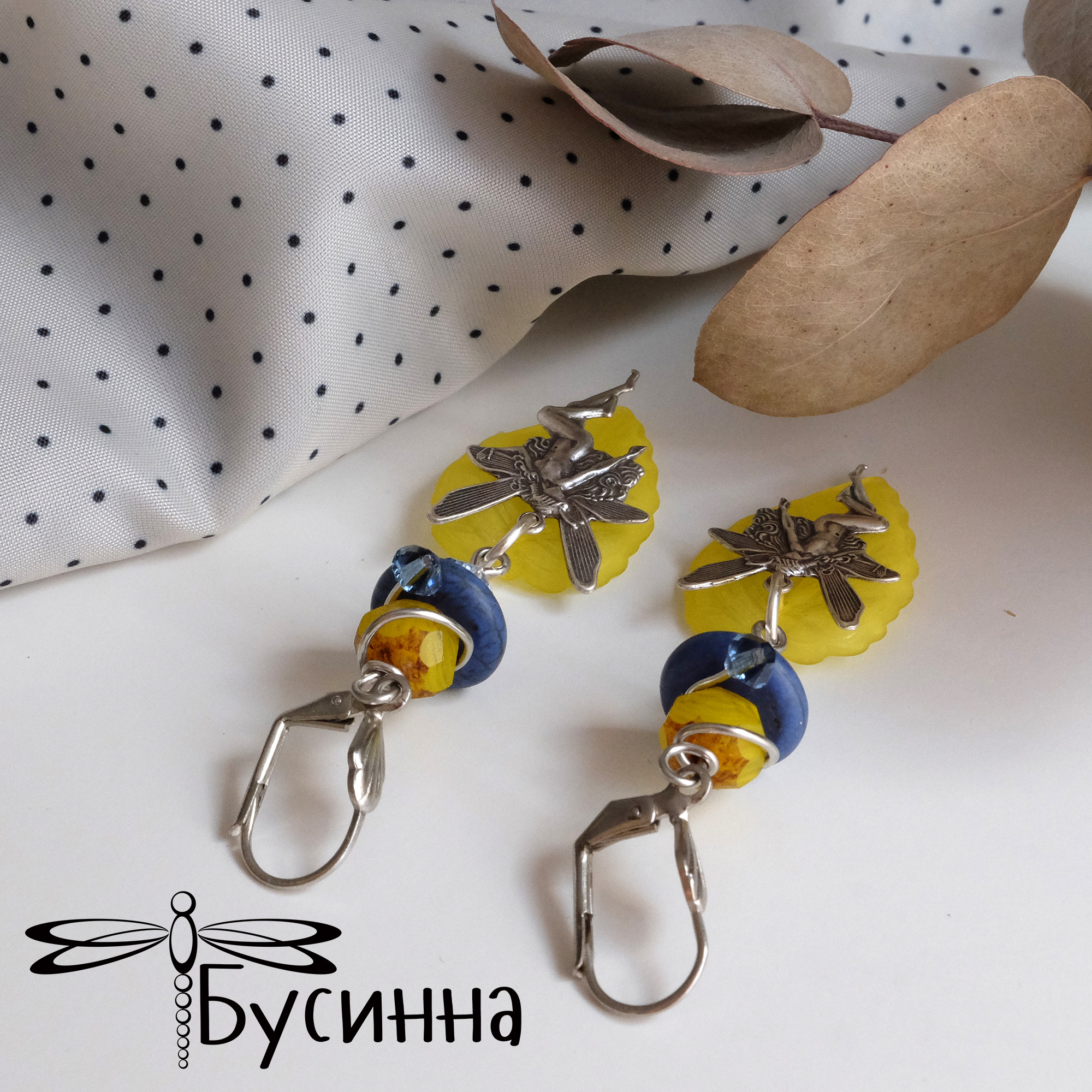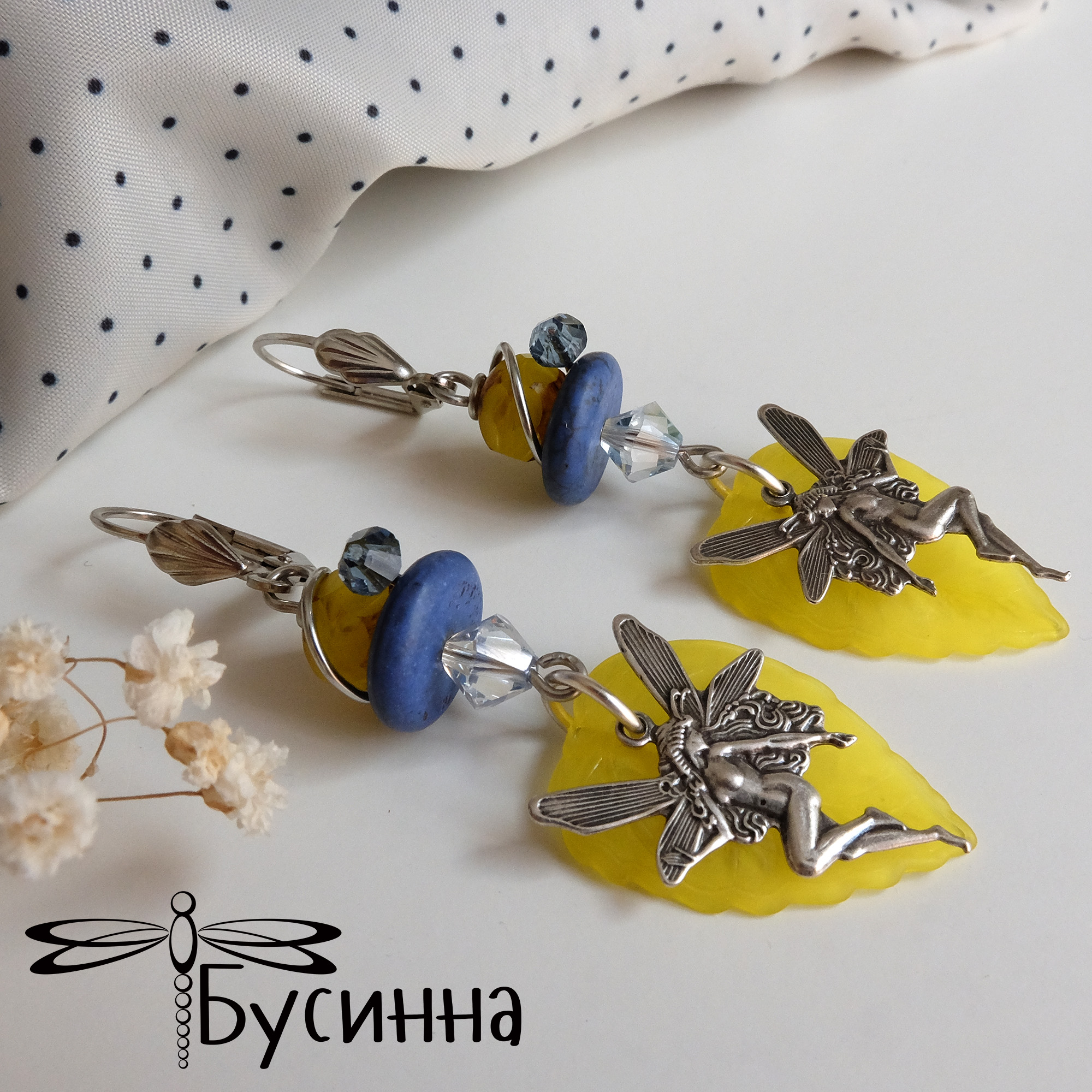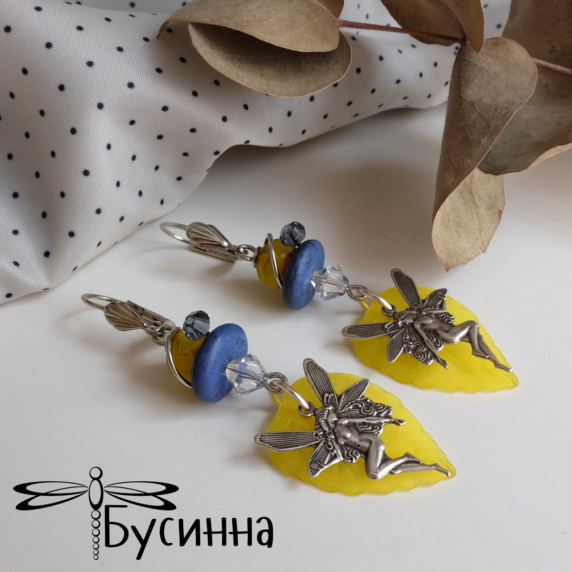Серьги "Свежесть лимона" (2017) - бусина Чехия, бусина акриловая, кристаллы Сваровски, фурнитура США, говлит