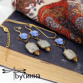 Размер серьги без швензы около 5 см, размер кулона около 5,5 см, цепочка-змейка позолоченная 49 см