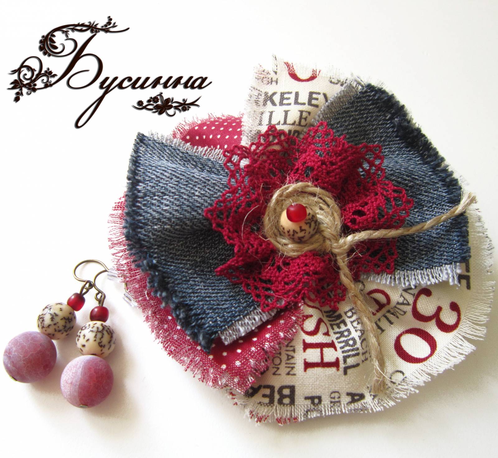 Полная фотография Вид украшения: КомплектГод: 2012В наличии: НетОписание: Брошь и серьги 'The Times' (2012) - агат, бусина костяная, веревка, кружево, ткань джинсовая, ткань хлопок, фурнитураМатериалы: агатбусина костянаяверевкакружевоткань джинсоваяткань хлопокфурнитура Войдите, чтобы оставлять комментарии