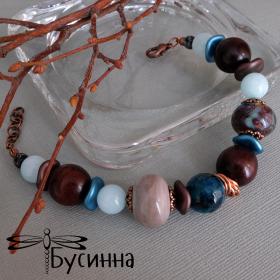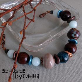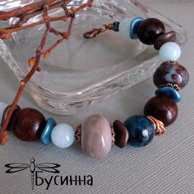 Браслет "Туманный Альбион" (2018) - бусина Чехия, жадеит, бусина деревянная, бусина ручной работы В. Балашовой, агат, фурнитура США