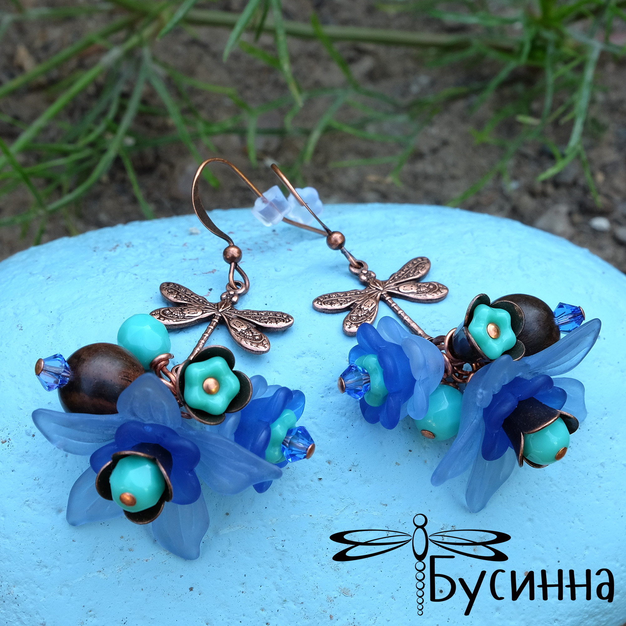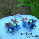 Серьги "Удивительные обитатели сада" (2016) - кристаллы Сваровски, бусина деревянная,бусина Чехия, фурнитура Чехия, цветы акриловые, фурнитура США