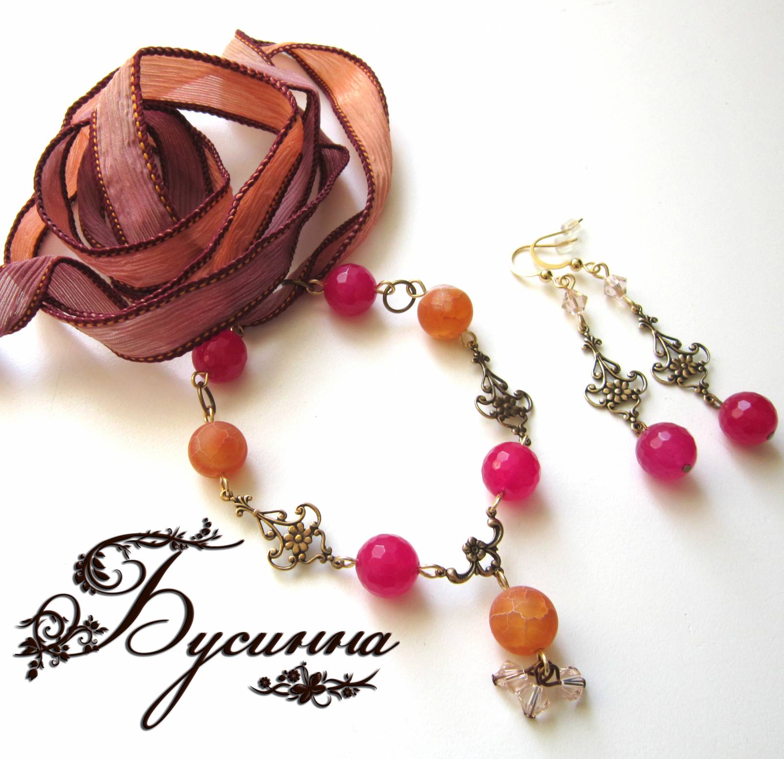 Бусы и серьги 'Угадай-ягода!' (2012) - агат, лента шелковая, кристалл Swarovski, фурнитура США