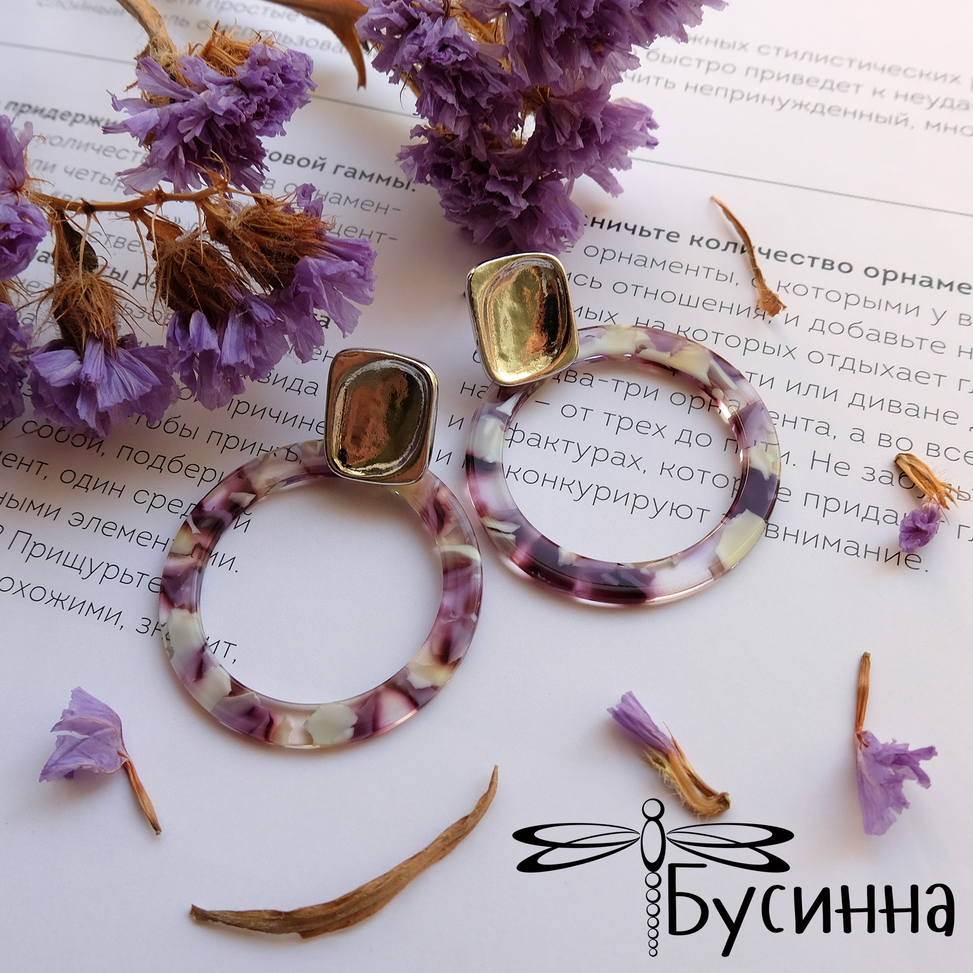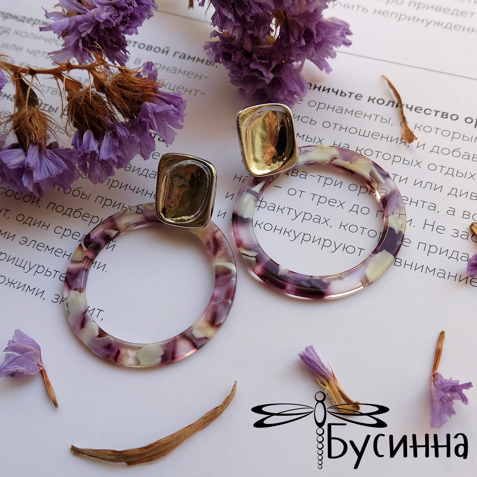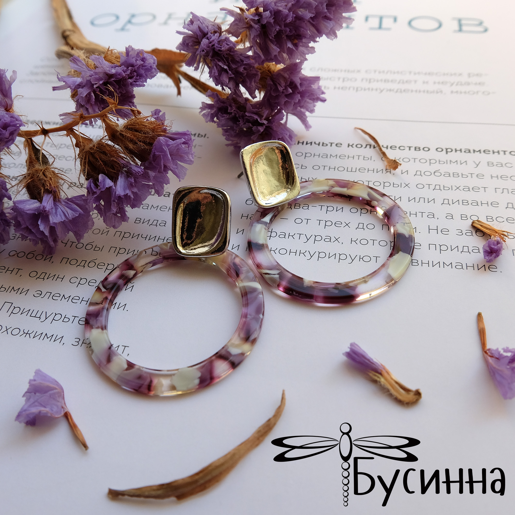 Серьги-пуссеты "Вереск обыкновенный" (2020) - фурнитура Южная Корея из латуни с родированием, пин - титан, пластик Южная Корея