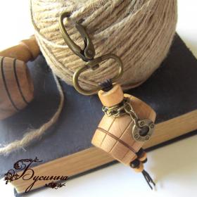 Брелок мужской 'Вино викингов' (2014) - бусина деревянная, бусина-бочонок из можжевелового дерева, пуговица, шнур вощеный, фурнитура Размер брелка 8,5 см в длину