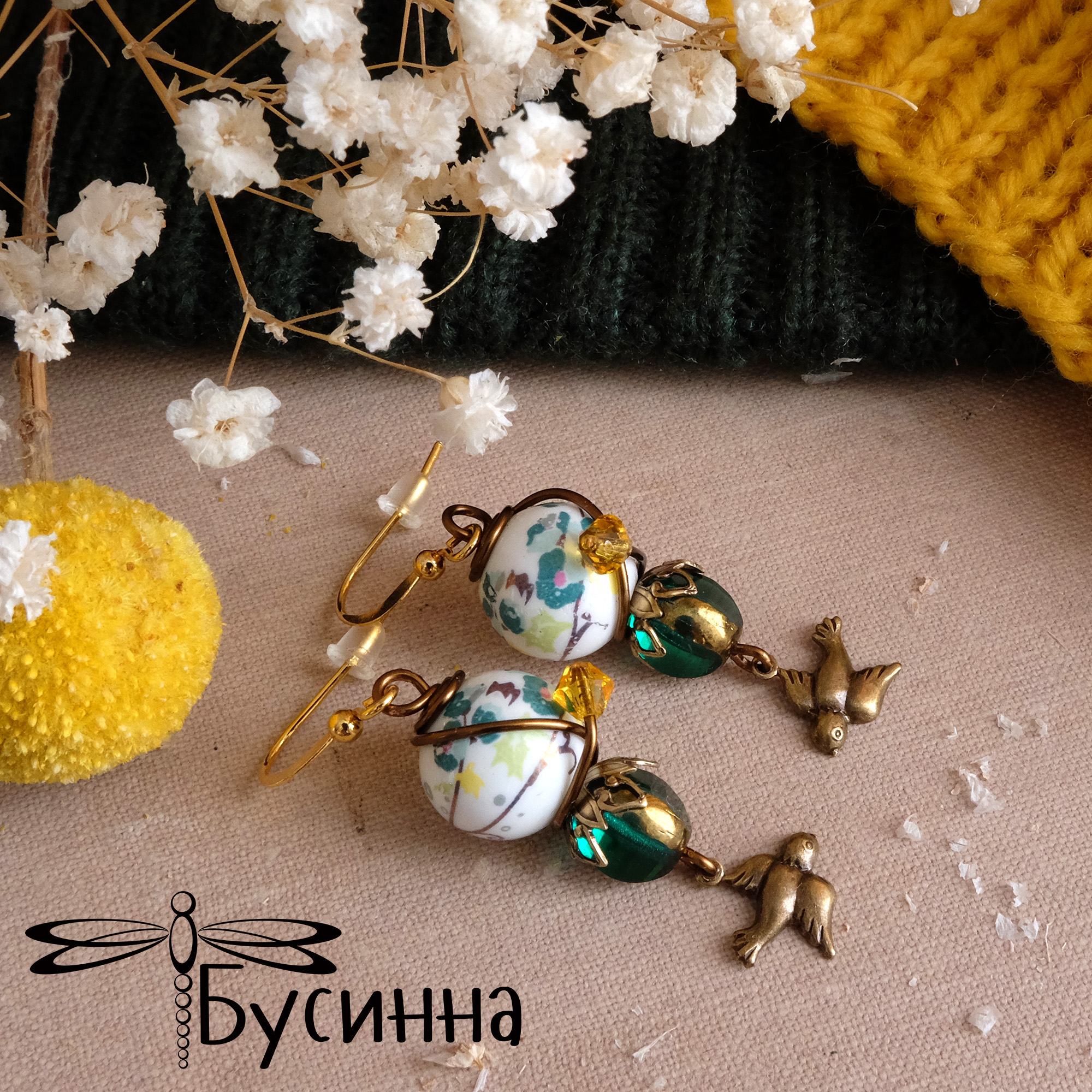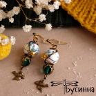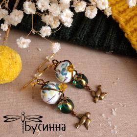 Серьги "Влюбленная парочка" (2016) - кристаллы Сваровски, бусина Чехия, бусина керамическая, фурнитура США, фурнитура Южная Корея