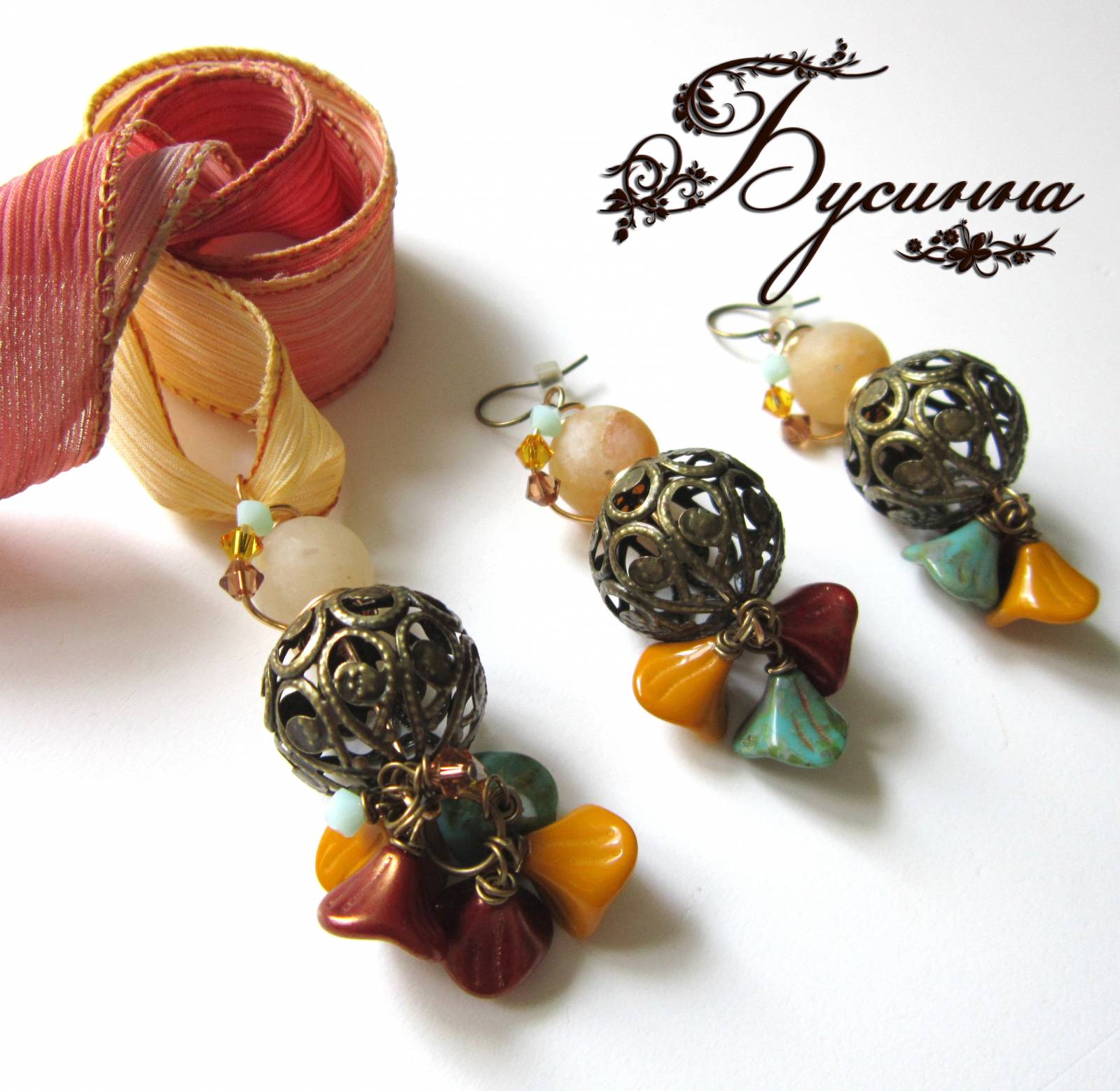 Полная фотография Вид украшения: КомплектГод: 2012В наличии: НетОписание: Кулон и серьги 'Яркий всплеск эмоций' (2012) - агат, кристаллы Swarovski, бусина Чехия, фурнитура, лента шелковаяМатериалы: агаткристаллы Swarovskiбусина Чехияфурнитуралента шелковая Войдите, чтобы оставлять комментарии