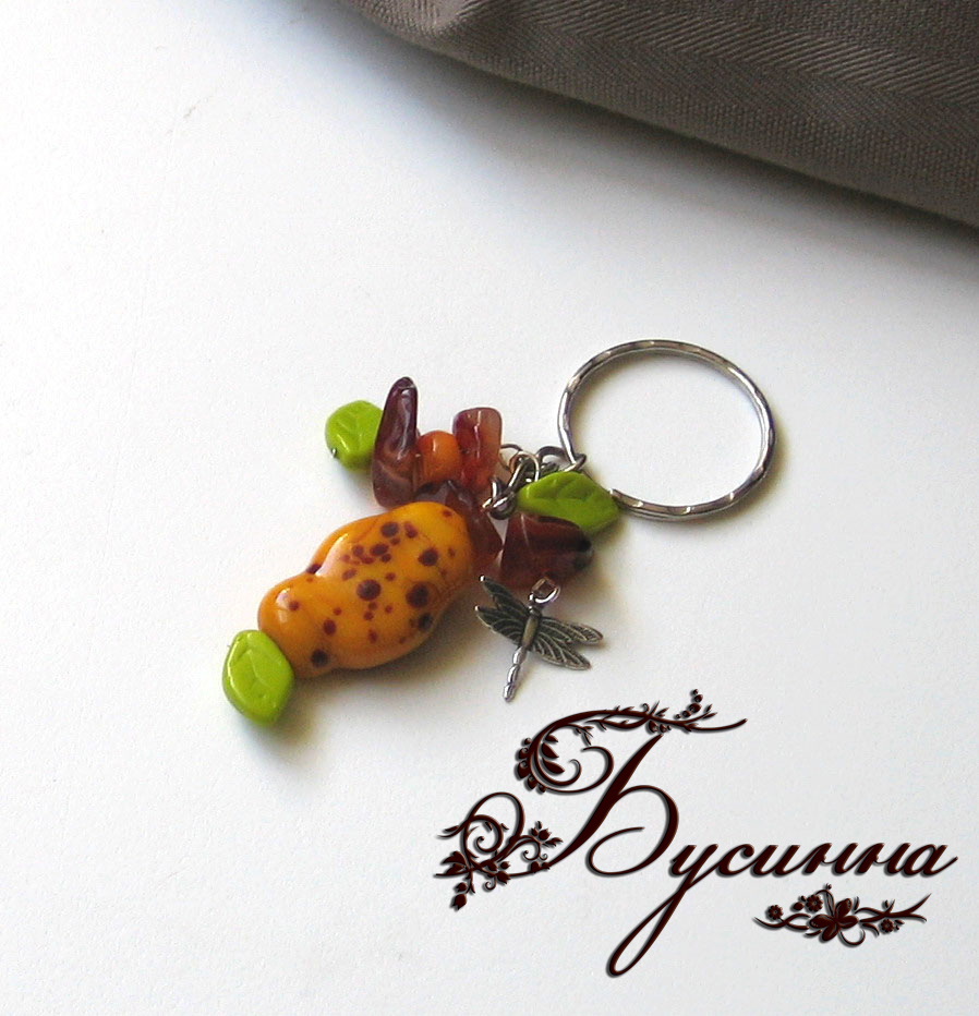 Брелок 'Южное Сафари' (2011) - бусина ручной работы В.Балашовой, сердолик, бусина Чехия, подвеска 'Стрекоза', фурнитура