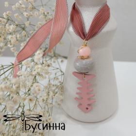 Кулон "Загадай желание" розовый из новой лимитированной коллекции исполнит все Ваши мечты. Если ты творческая, креативная личность и любишь что-то необычное, то это украшение для тебя. Кулон "Загадай желание" (2016) розовый - лента шелковая, фурнитура США, кристалл Сваровски, бусина В.Балашовой, жадеит, скелет рыбы (сталь)
