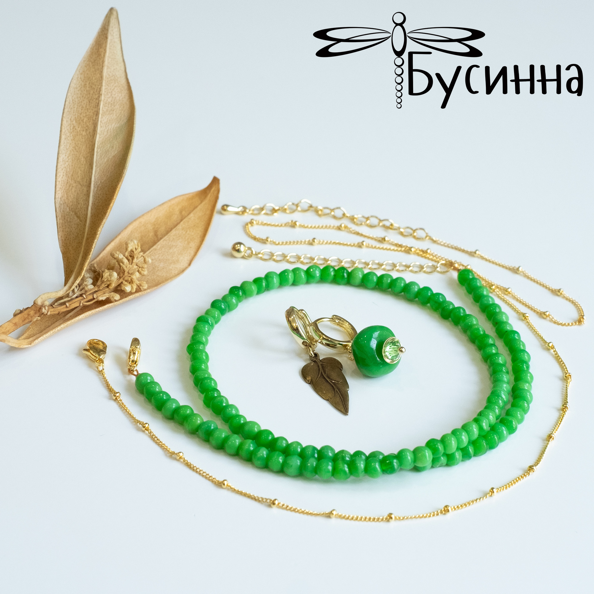 Чокер, цепочка и серьги " Зеленый горошек" (2021) - бусина стеклянная винтажная, фурнитура США, кристалл Сваровски, фурнитура Южная Корея. Цвет украшения на экране может отличаться от реального.