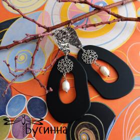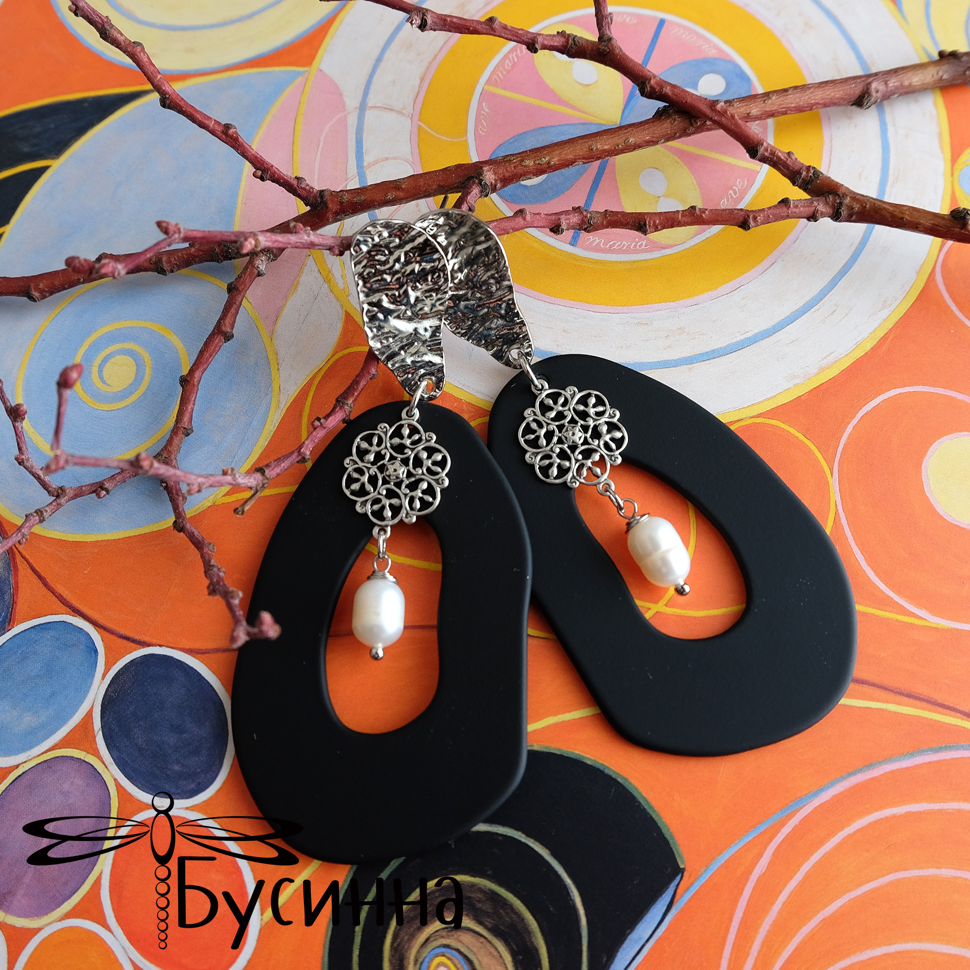 Серьги-пуссеты "Жемчуг и восьмидесятые" (2020) - фурнитура Южная Корея из латуни с родированием, пин - титан, пластик Южная Корея, фурнитура США, жемчуг речной. Цвет украшения на экране может отличаться от реального.